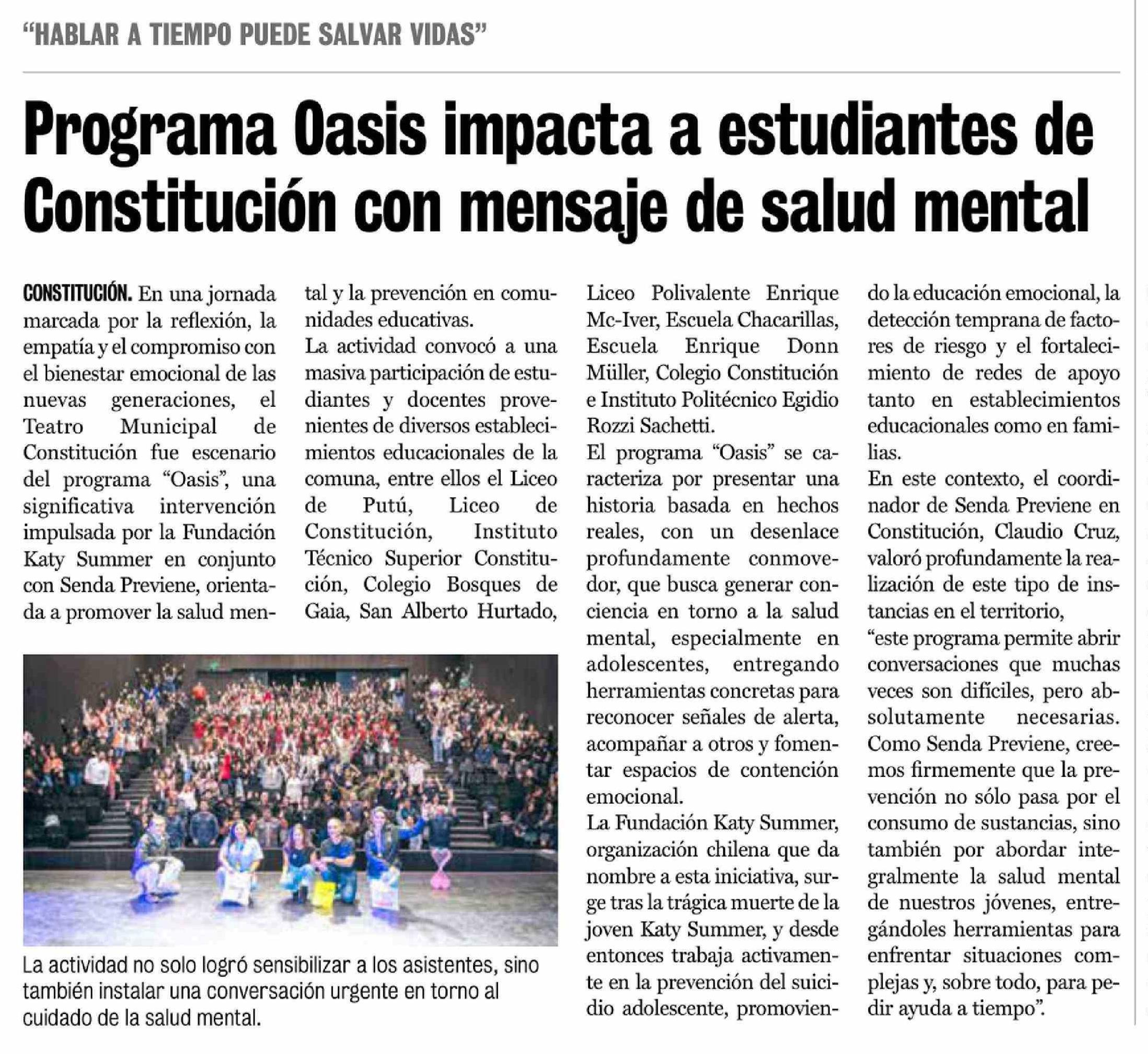 Título: Programa Oasis impacta a estudiantes de Constitución con mensaje de salud mental