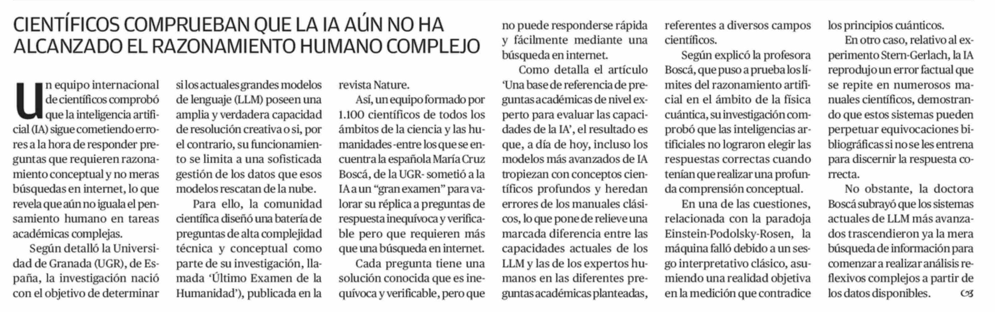 CIENTÍFICOS COMPRUEBAN QUE LAIA AÚN NOHA ALCANZADO EL RAZONAMIENTO HUMANO COMPLEJO 07-02-2026 El Diario de Atacama |