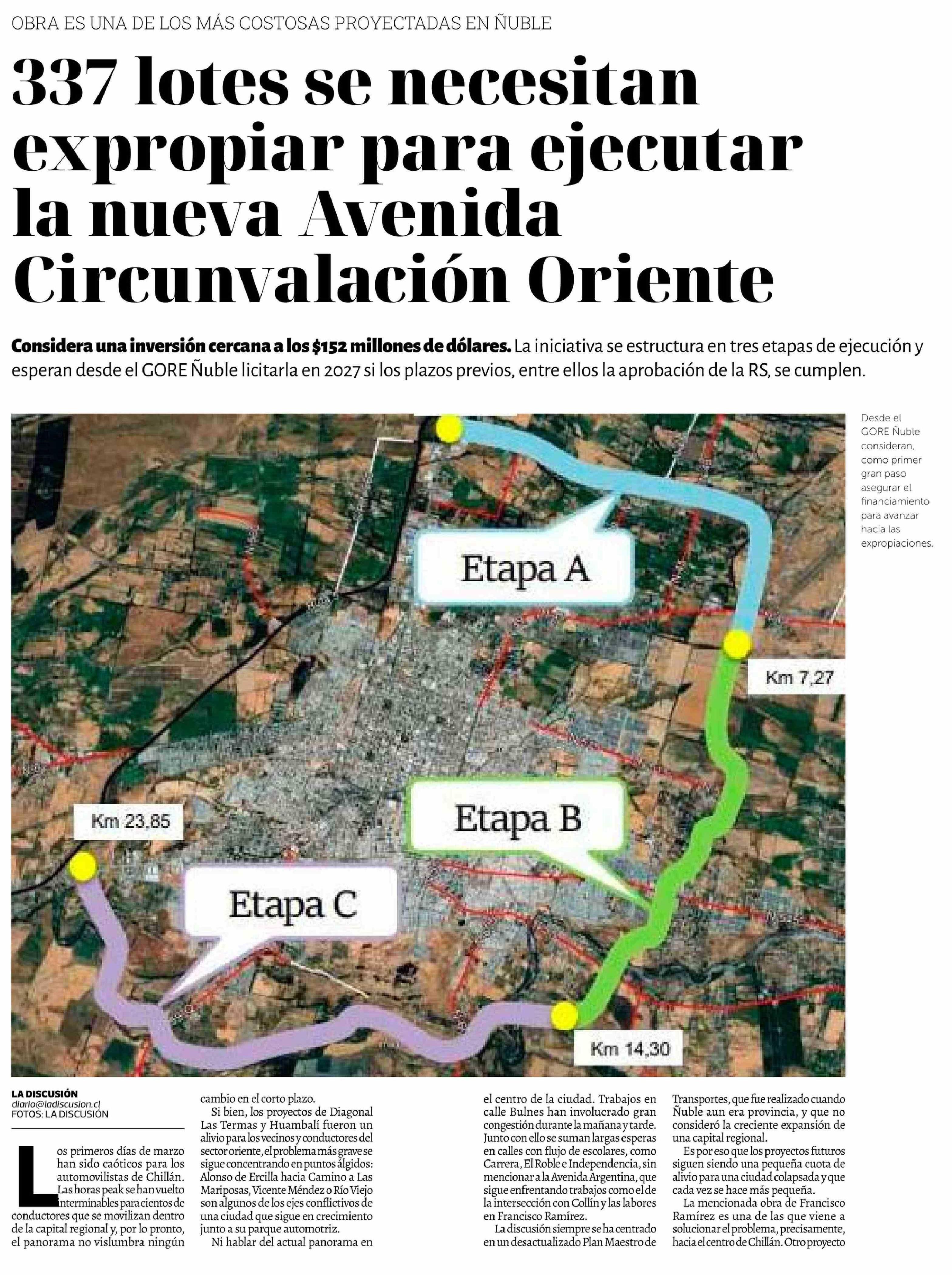 337 Lotes se necesitan expropiar para ejecutar la nueva Avenida Circunvalación Oriente 15-03-2026 La Discusión |