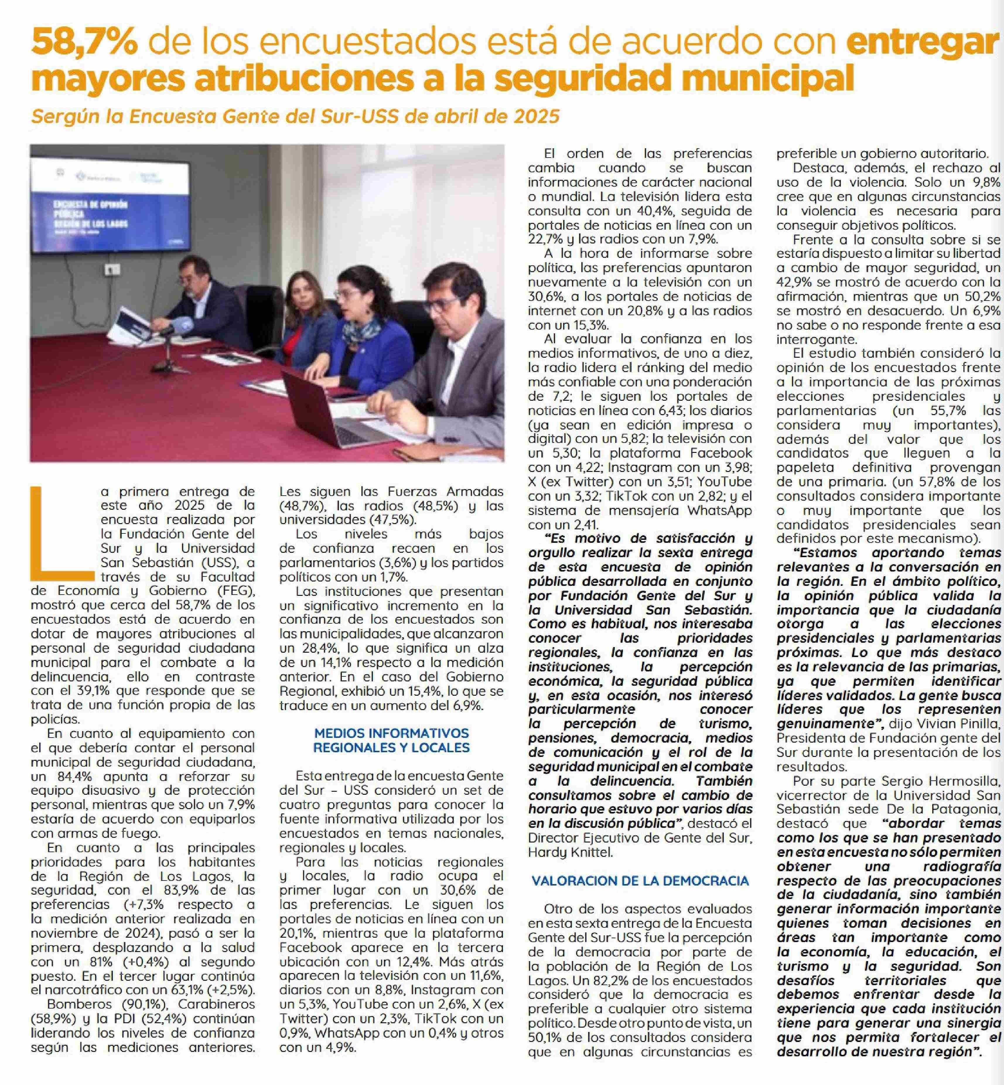 58,7% de los encuestados está de acuerdo con entregar mayores atribuciones a la seguridad municipal 11-04-2025 El Insular |