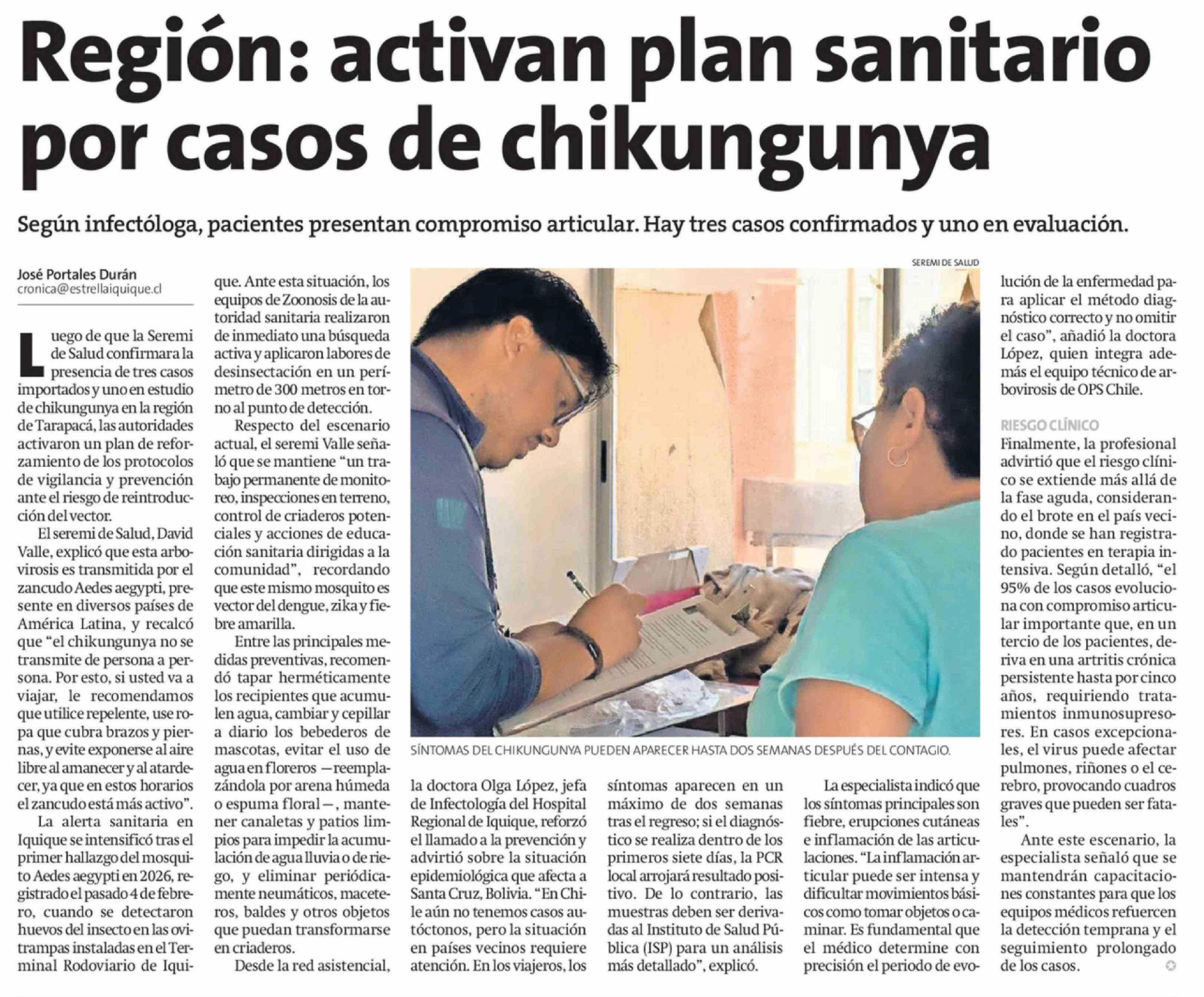 Región: activan plan sanitario por casos de chikungunya 10-03-2026 La Estrella de Iquique |