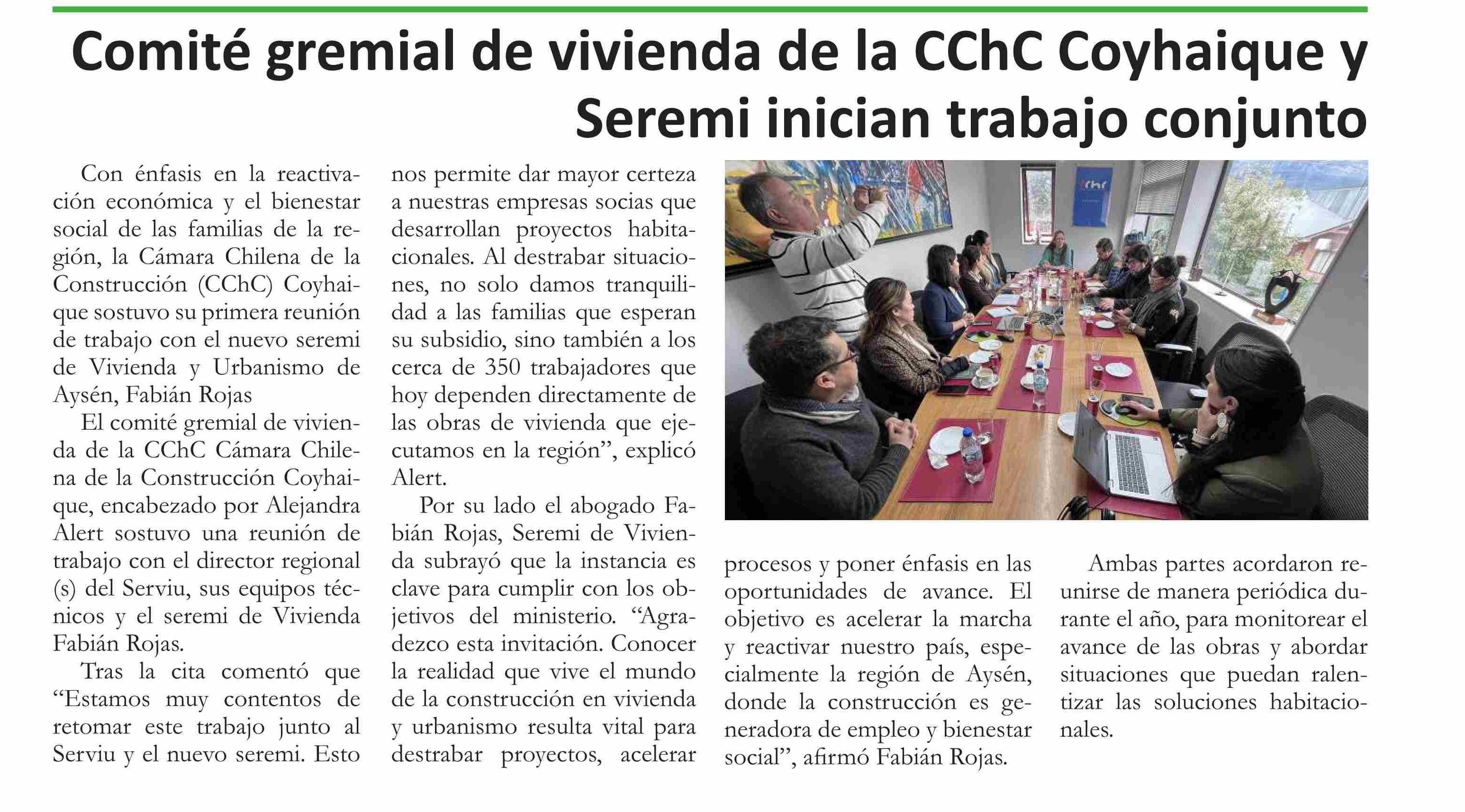 | Título: | Comité gremial de vivienda de la CChC Coyhaique y Seremi inician trabajo conjunto |