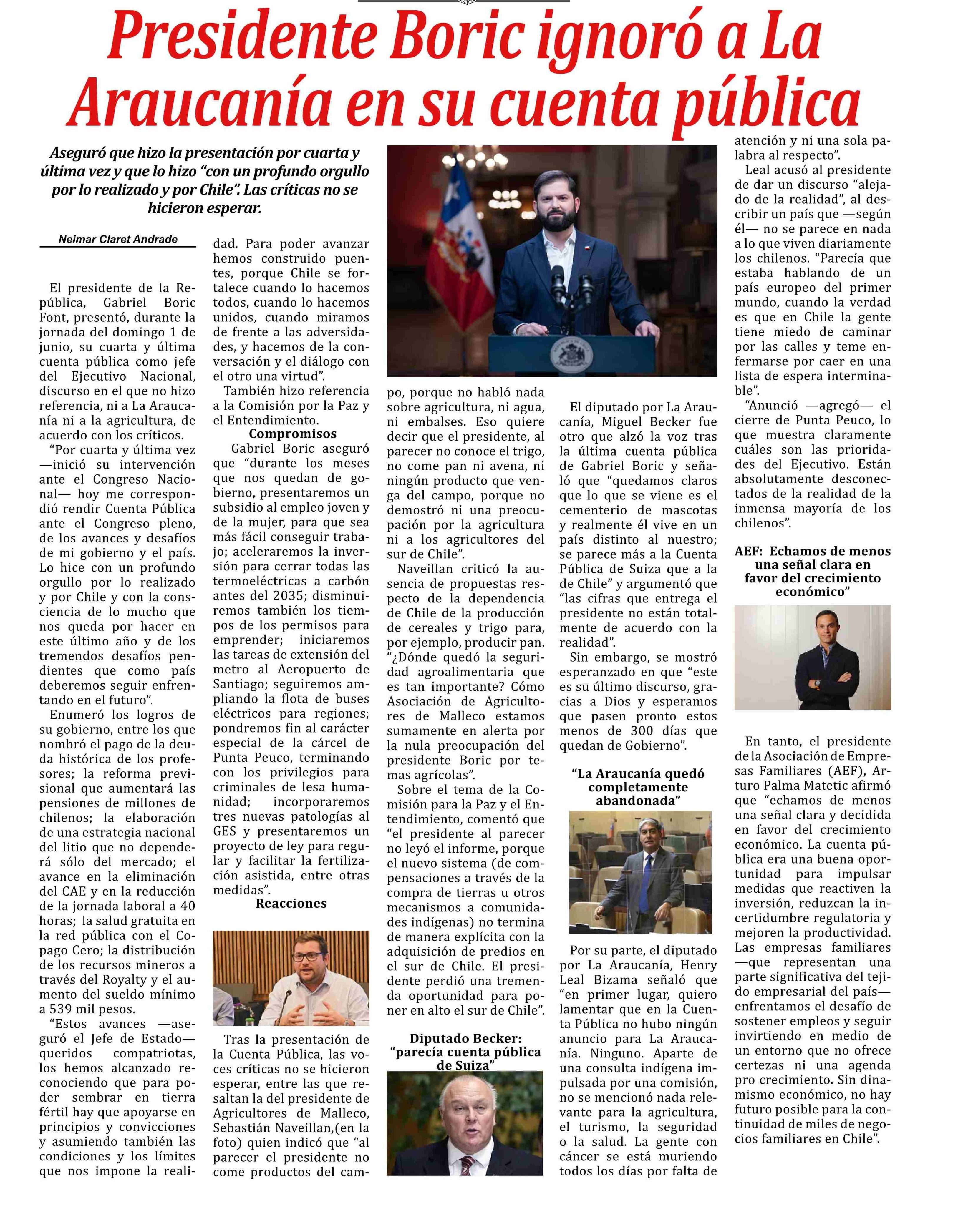 Título: Presidente Boric ignoró a La Araucanía en su cuenta pública