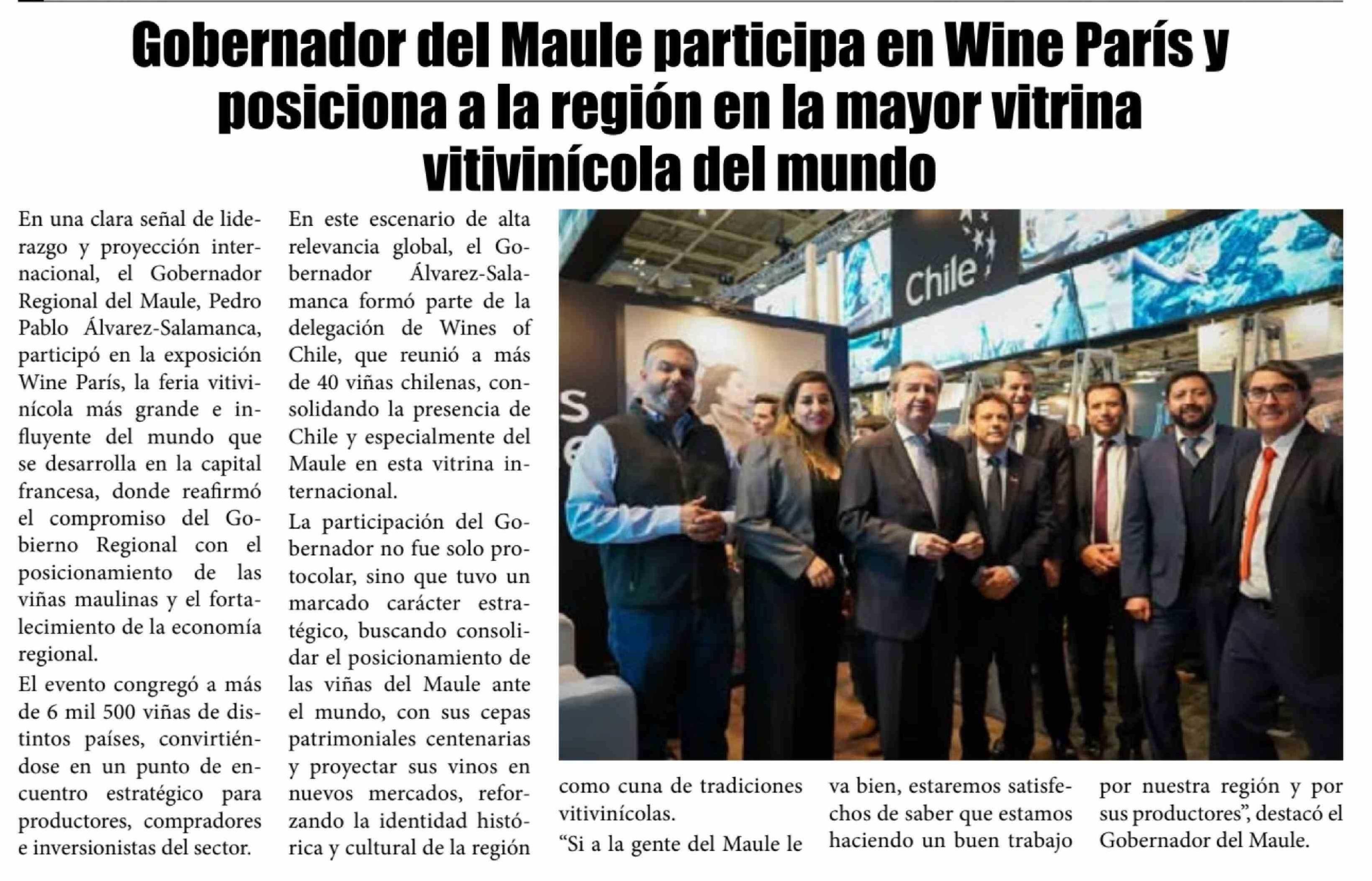 Título: Gobernador del Maule participa en Wine París y posiciona a la región en la mayor vitrina vitivinícola del mundo