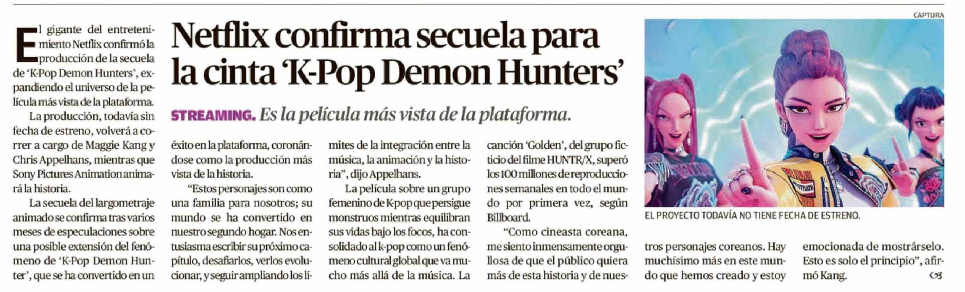 Título: Netflix confirma secuela para la cinta 'K-Pop Demon Hunters'