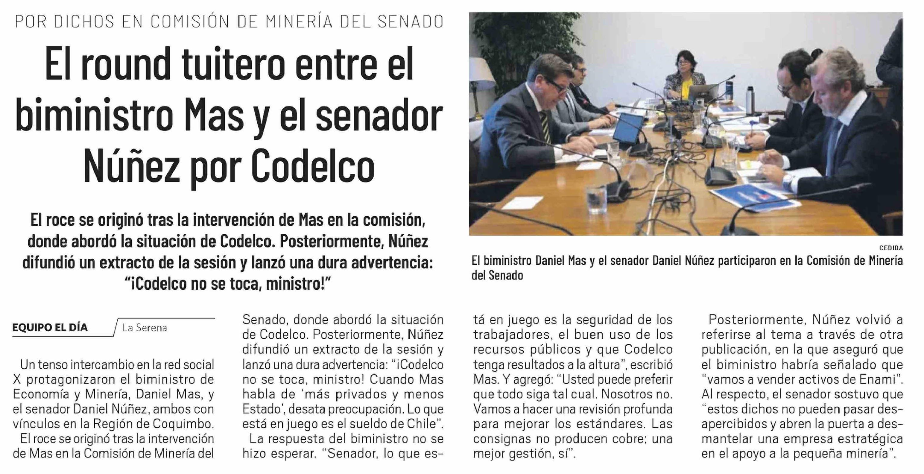 | Título: | El round tuitero entre el biministro Mas y el senador Núñez por Codelco |