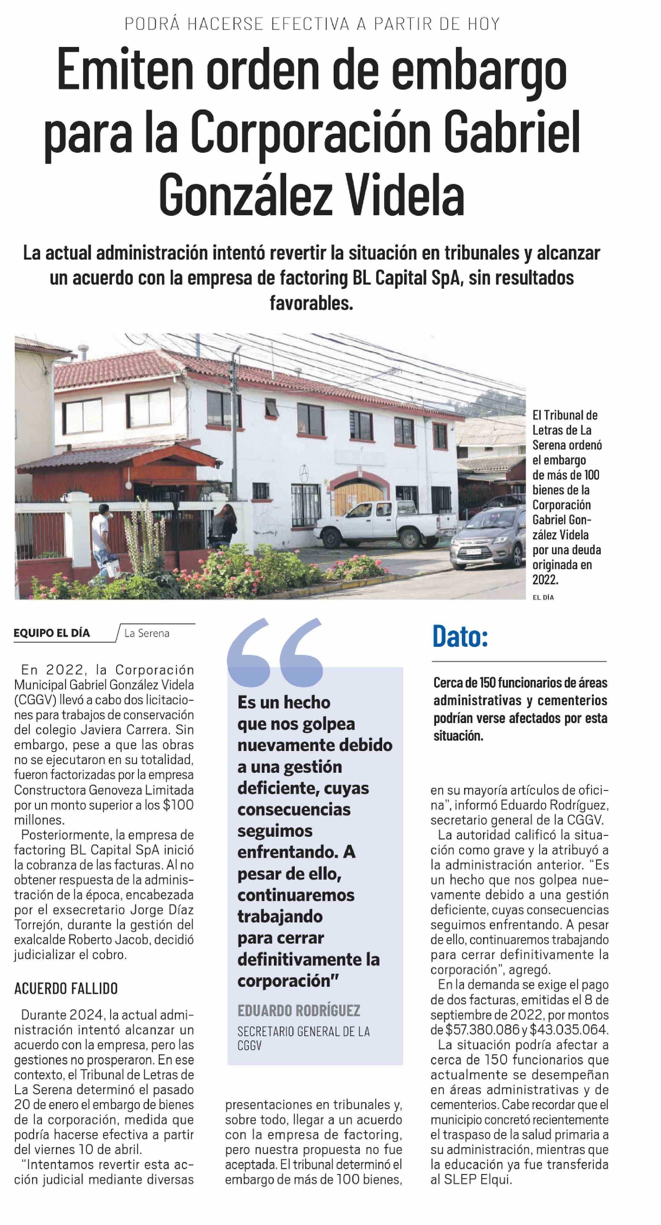 Emiten orden de embargo para la Corporación Gabriel González Videla 10-04-2026 El Día |