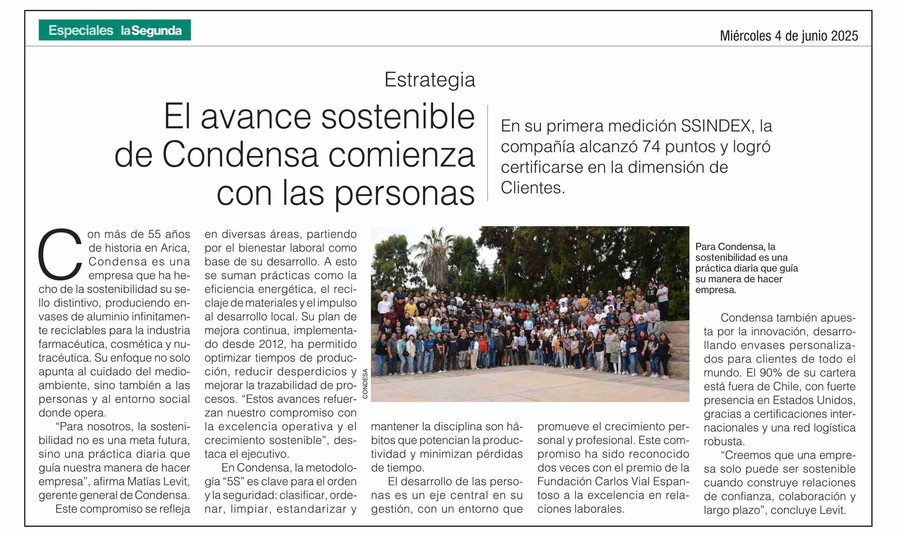 El avance sostenible de Condensa comienza con las personas 04-06-2025 La Segunda |