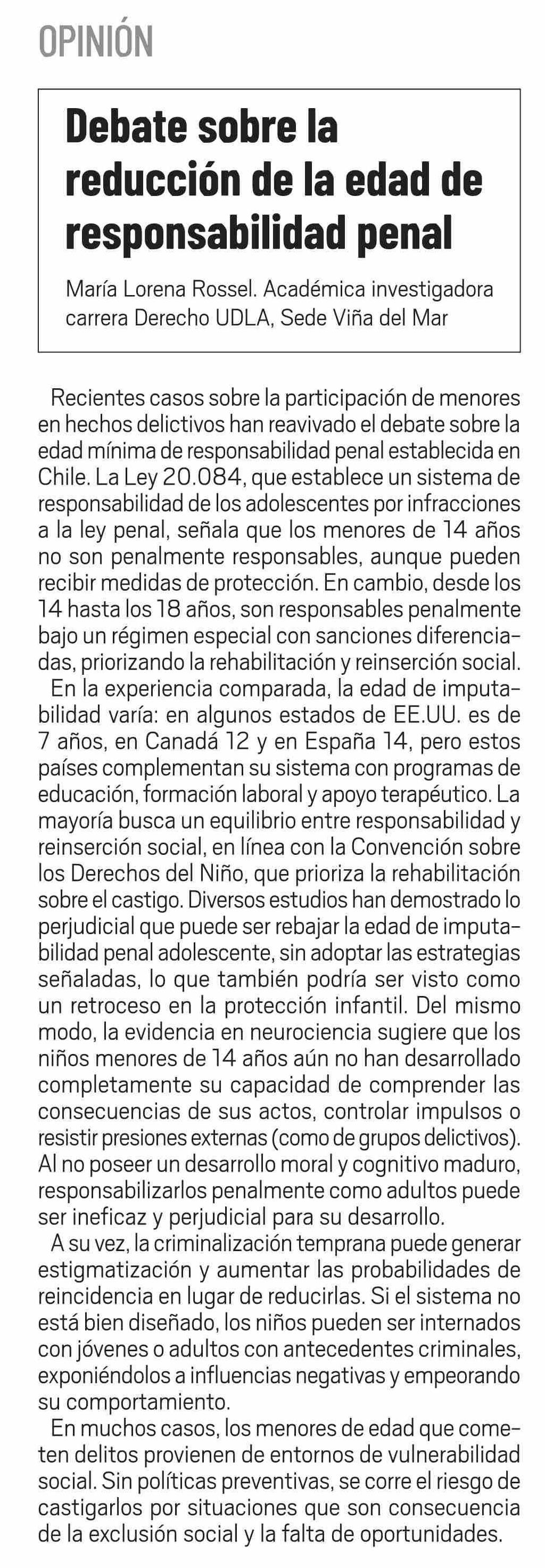 Título: COLUMNAS DE OPINIÓN: Debate sobre la reducción de la edad de responsabilidad penal