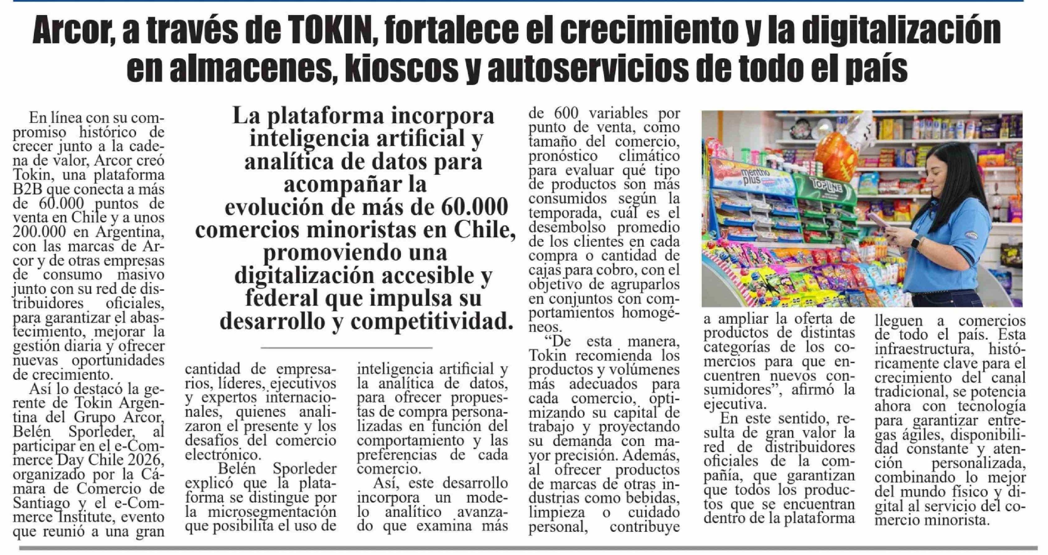 | Título: | Arcor, a través de TOKIN, fortalece el crecimiento y la digitalización en almacenes, kioscos y autoservicios de todo el país |