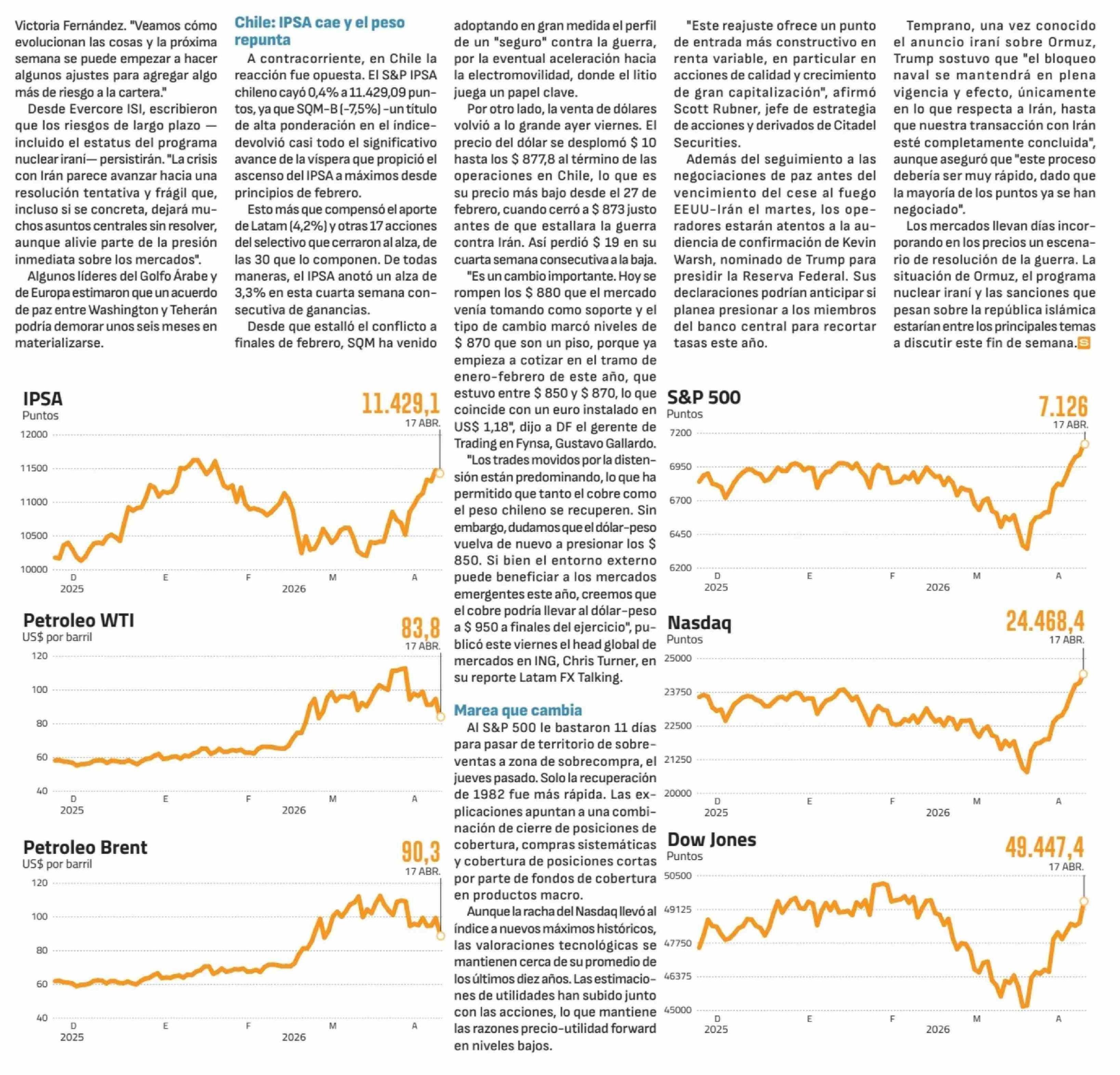 Wall Street lo da vuelta: mercado celebra la reapertura del estrecho de Ormuz 18-04-2026 Diario Financiero |