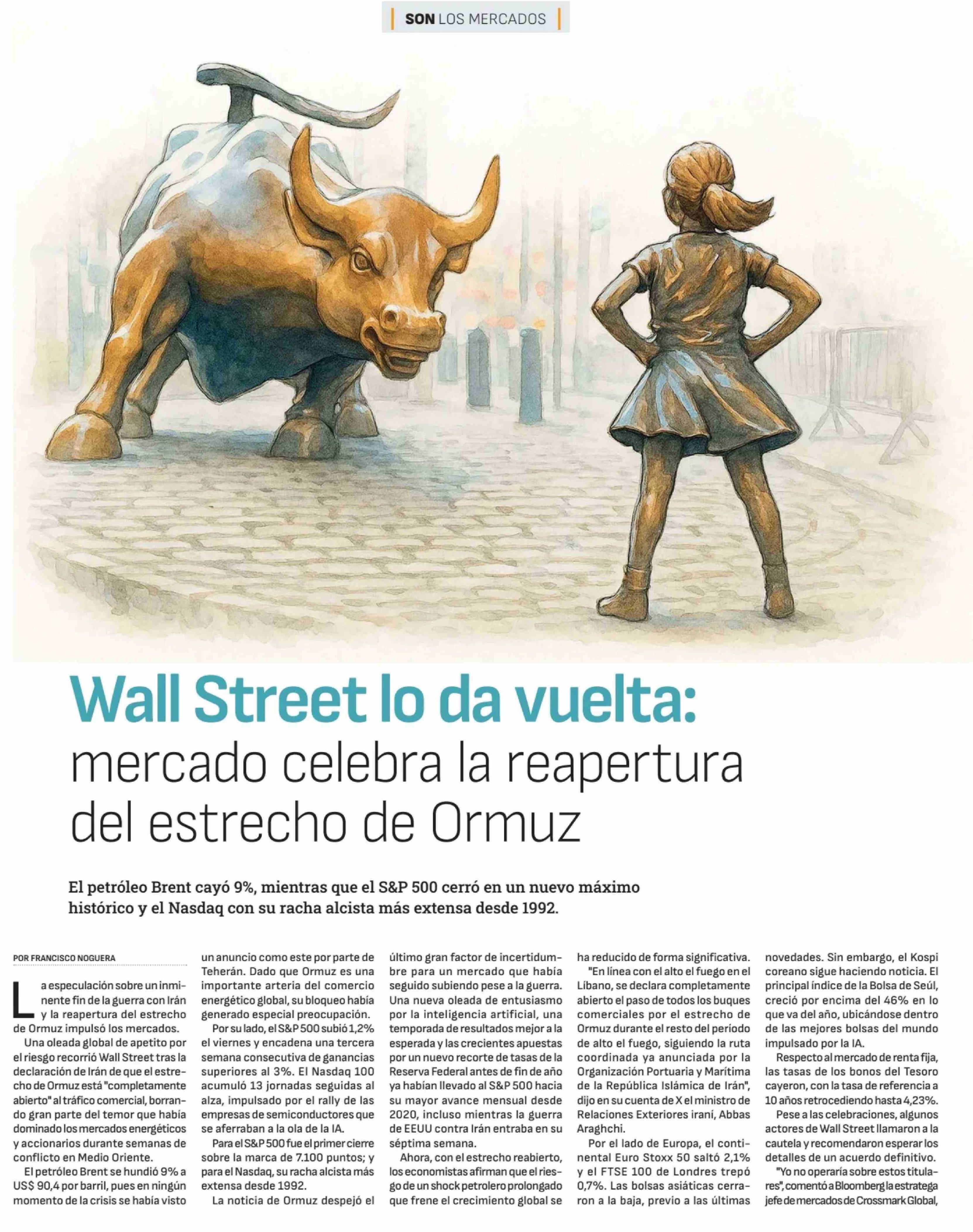 Título: Wall Street lo da vuelta: mercado celebra la reapertura del estrecho de Ormuz