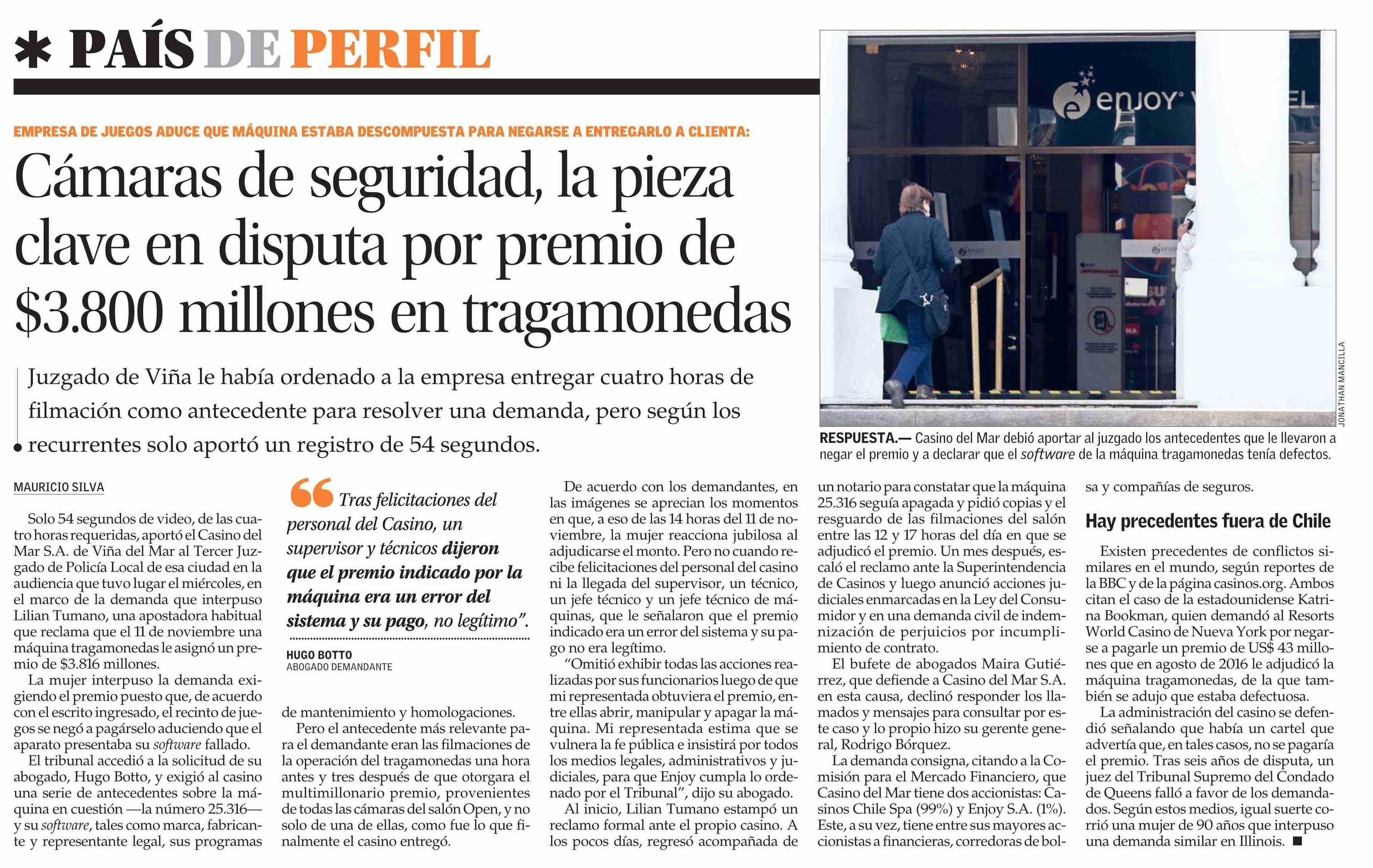 Cámaras de seguridad, la pieza clave en disputa por premio de $3.800 millones en tragamonedas 17-04-2026 El Mercurio |
