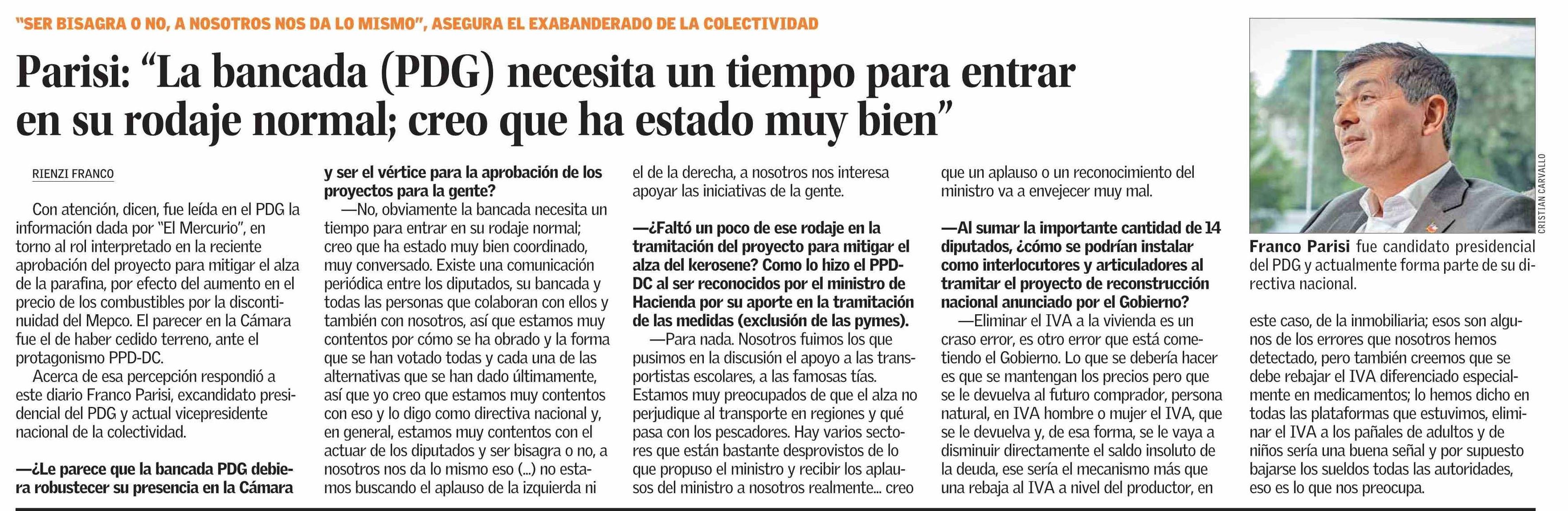 Parisi: “La bancada (PDG) necesita un tiempo para entrar en su rodaje normal; creo que ha estado muy bien” 31-03-2026 El Mercurio |