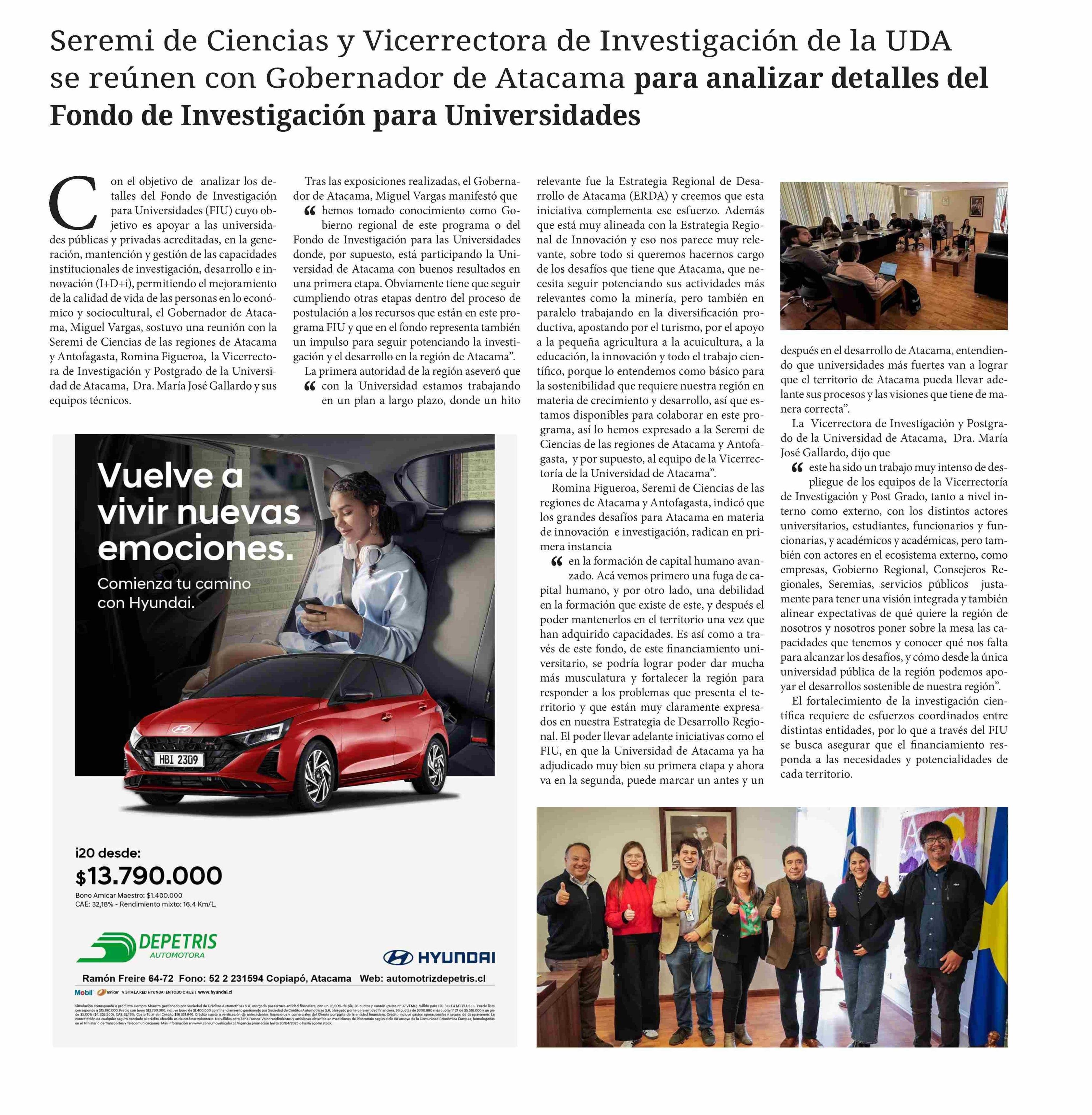 Título: Seremi de Ciencias y Vicerrectora de Investigación de la UDA se reúnen con Gobernador de Atacama para analizar detalles del Fondo de Investigación para Universidades