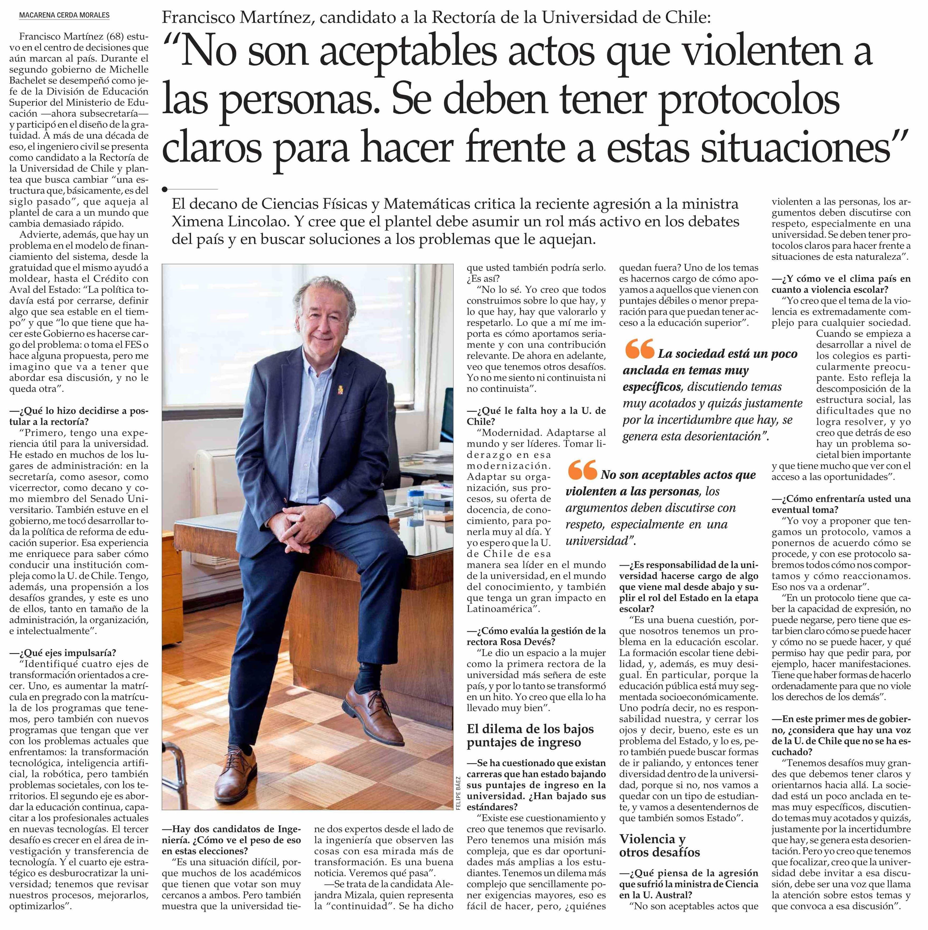 “No son aceptables actos que violenten a las personas. Se deben tener protocolos claros para hacer frente a estas situaciones” 19-04-2026 El Mercurio |