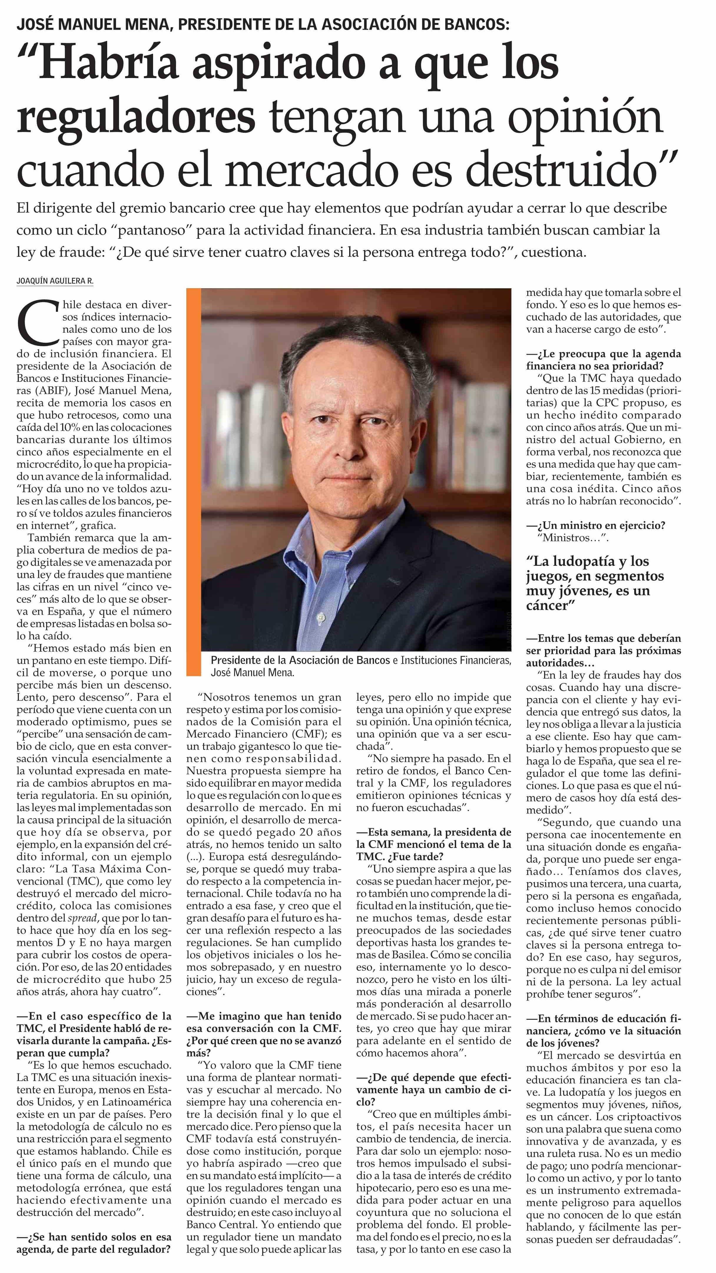 "Habría aspirado a que los reguladores tengan una opinión cuando el mercado es destruido" 17-01-2026 El Mercurio |