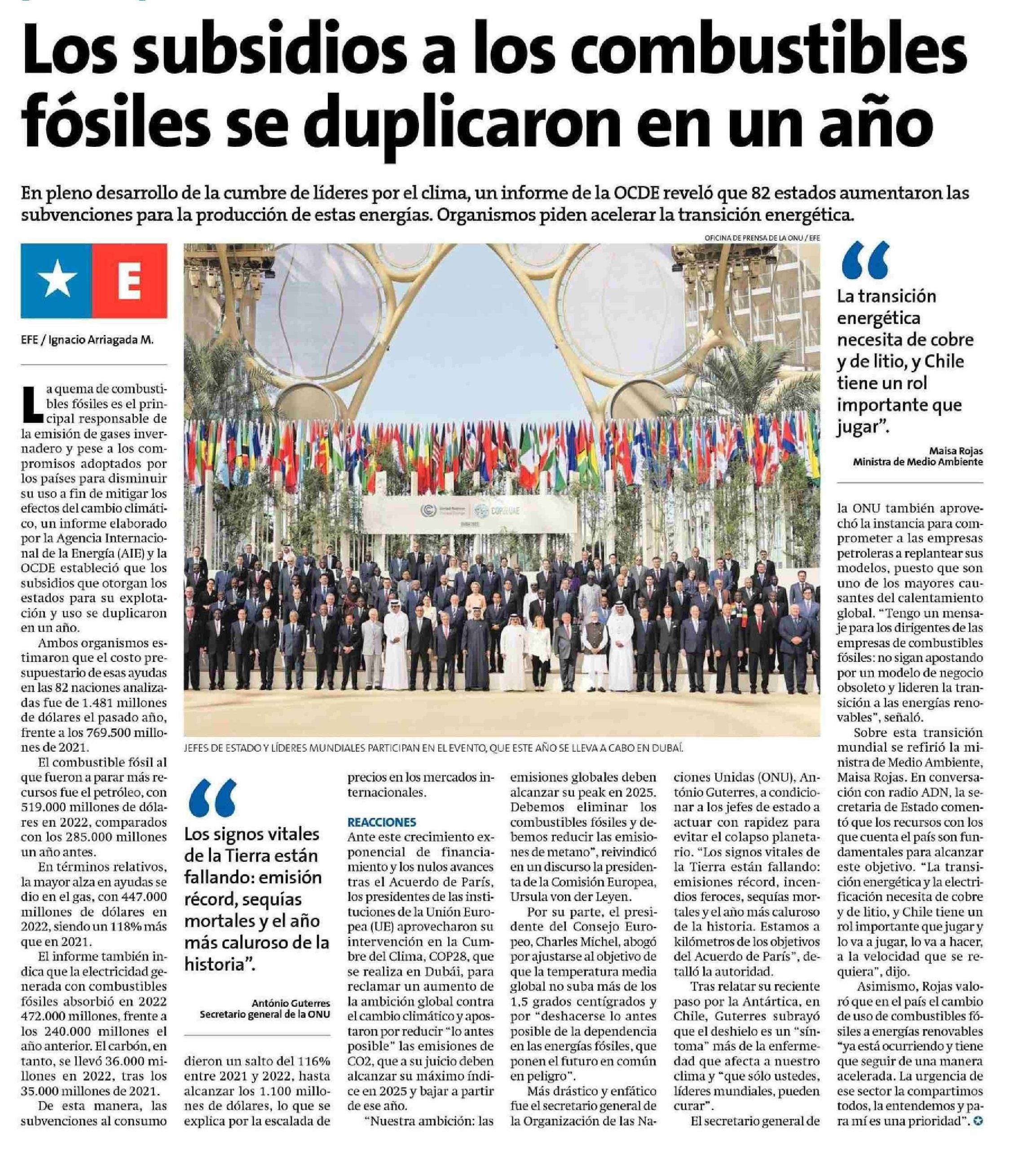 Los subsidios a los combustibles fósiles se duplicaron en un año 04-12-2023 La Estrella de Antofagasta |