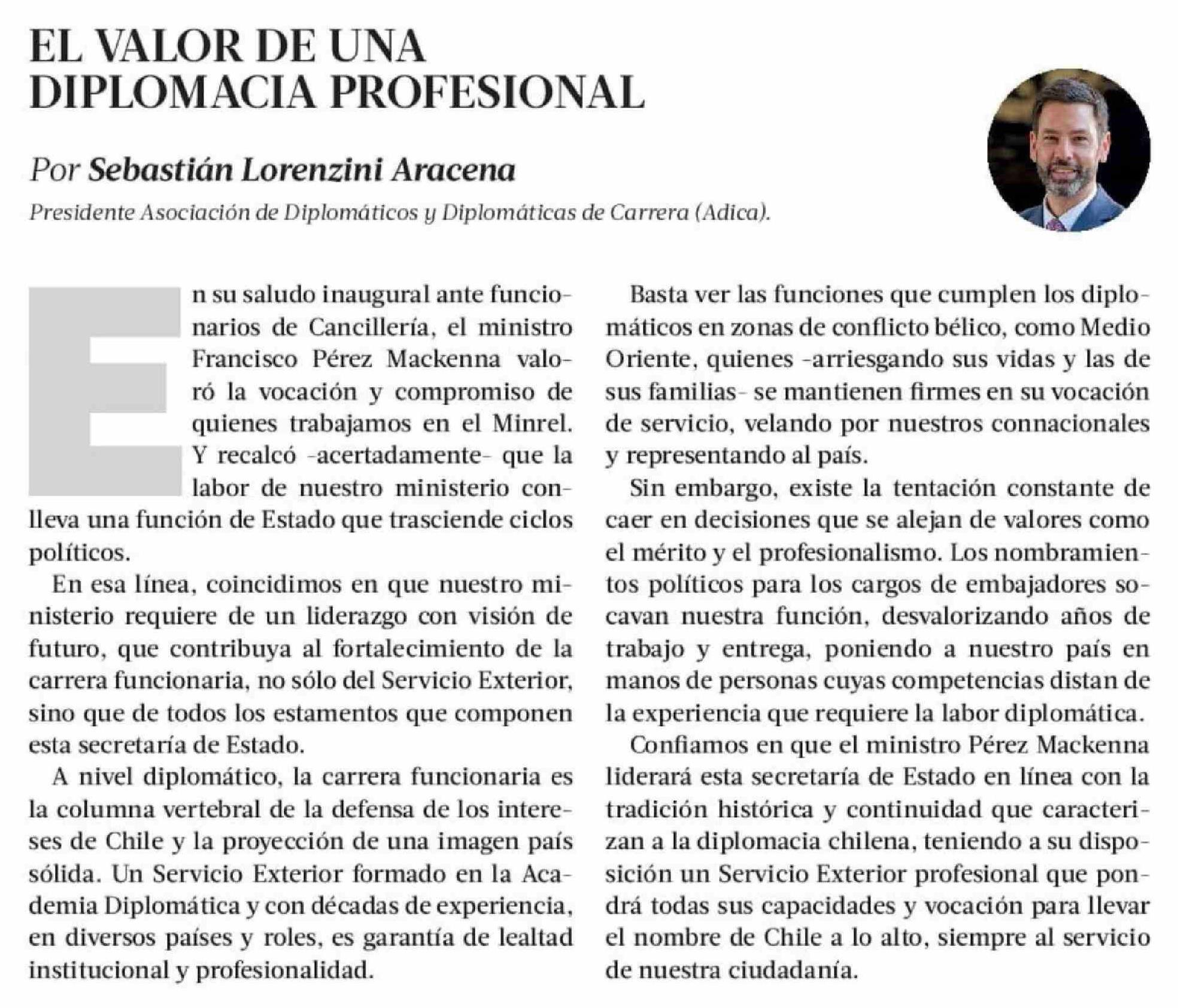 Título: Columnas de Opinión: EL VALOR DE UNA DIPLOMACIA PROFESIONAL