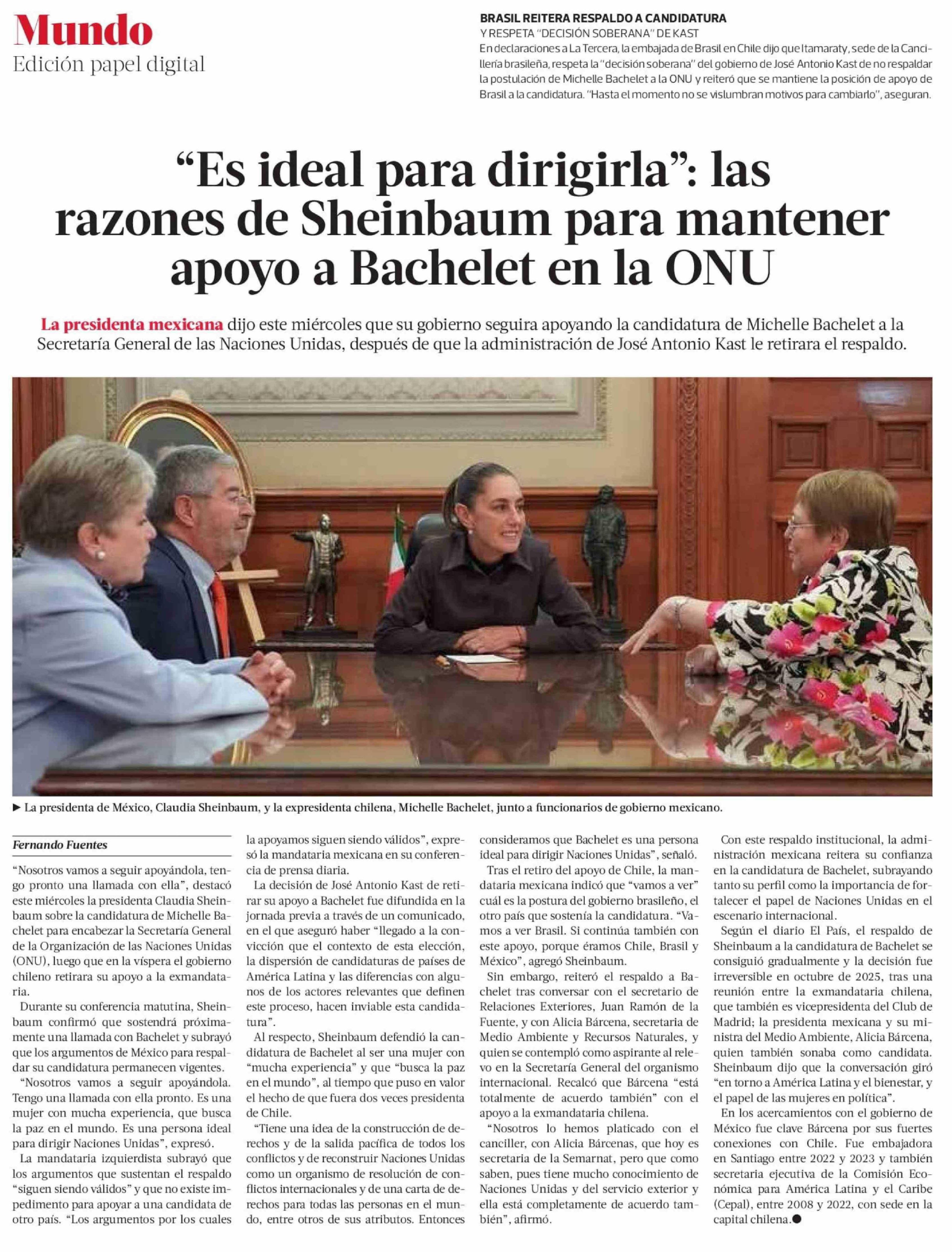 Título: "Es ideal para dirigirla": las razones de Sheinbaum para mantener apoyo a Bachelet en la ONU