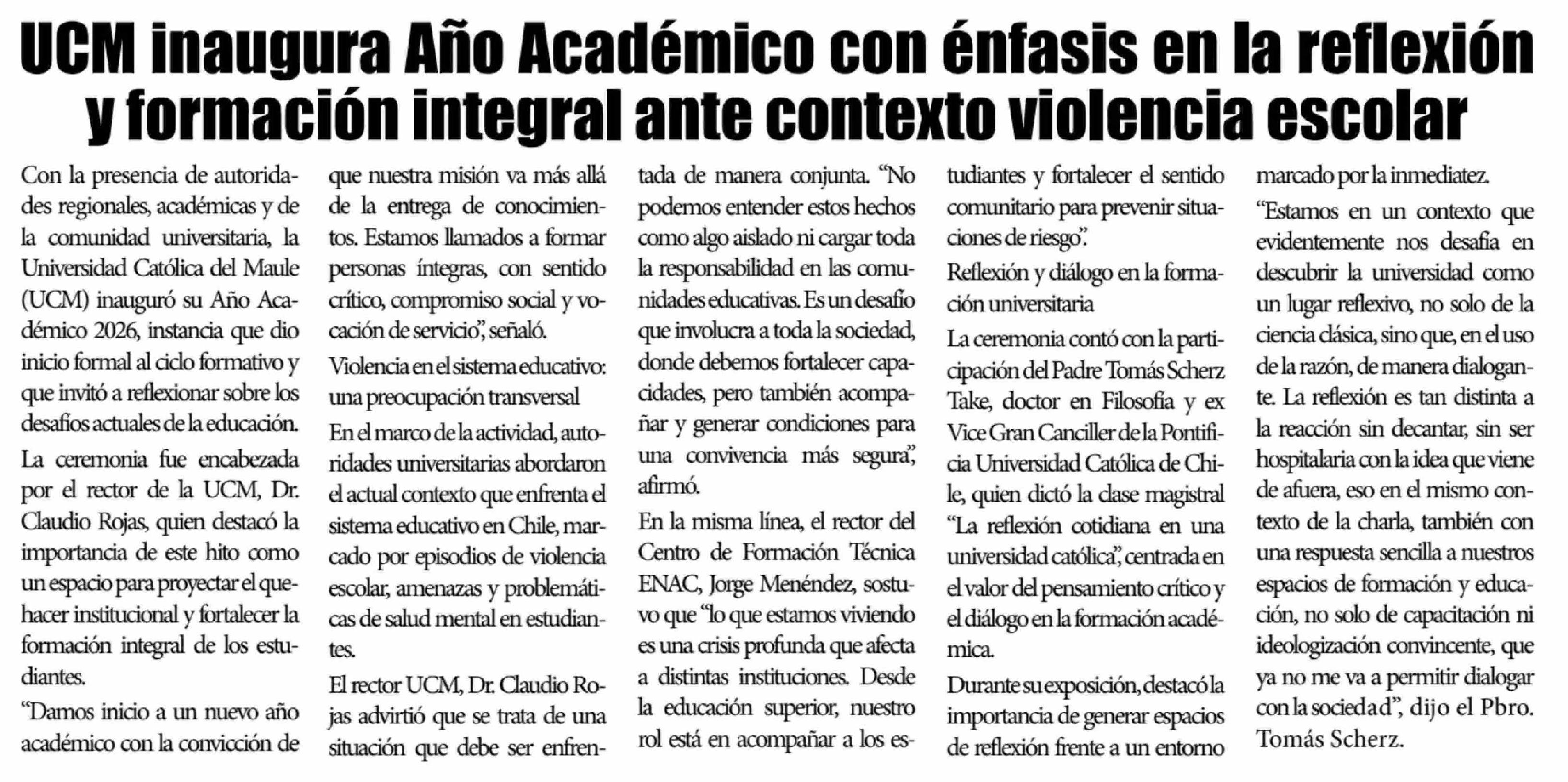 Título: UCM inaugura Año Académico con énfasis en la reflexión y formación integral ante contexto violencia escolar
