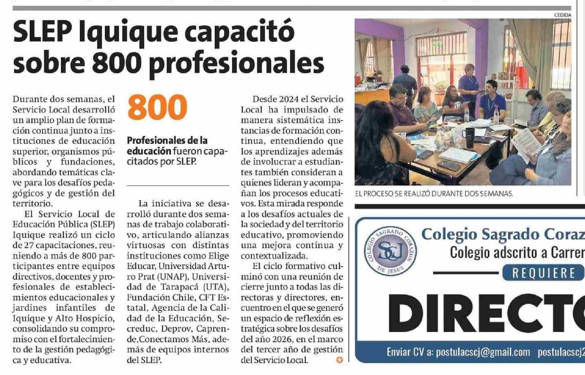 SLEP Iquique capacitó sobre 800 profesionales 24-01-2026 La Estrella de Iquique |