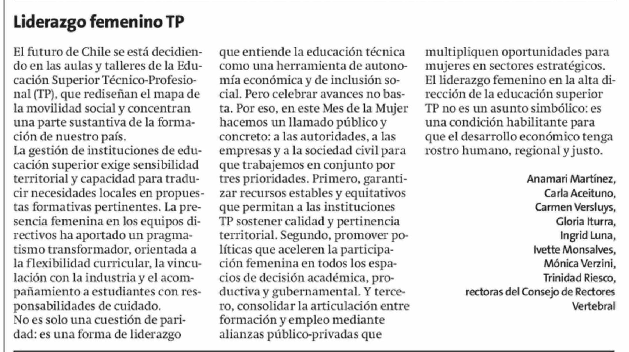 Título: Columnas de Opinión: Liderazgo femenino TP