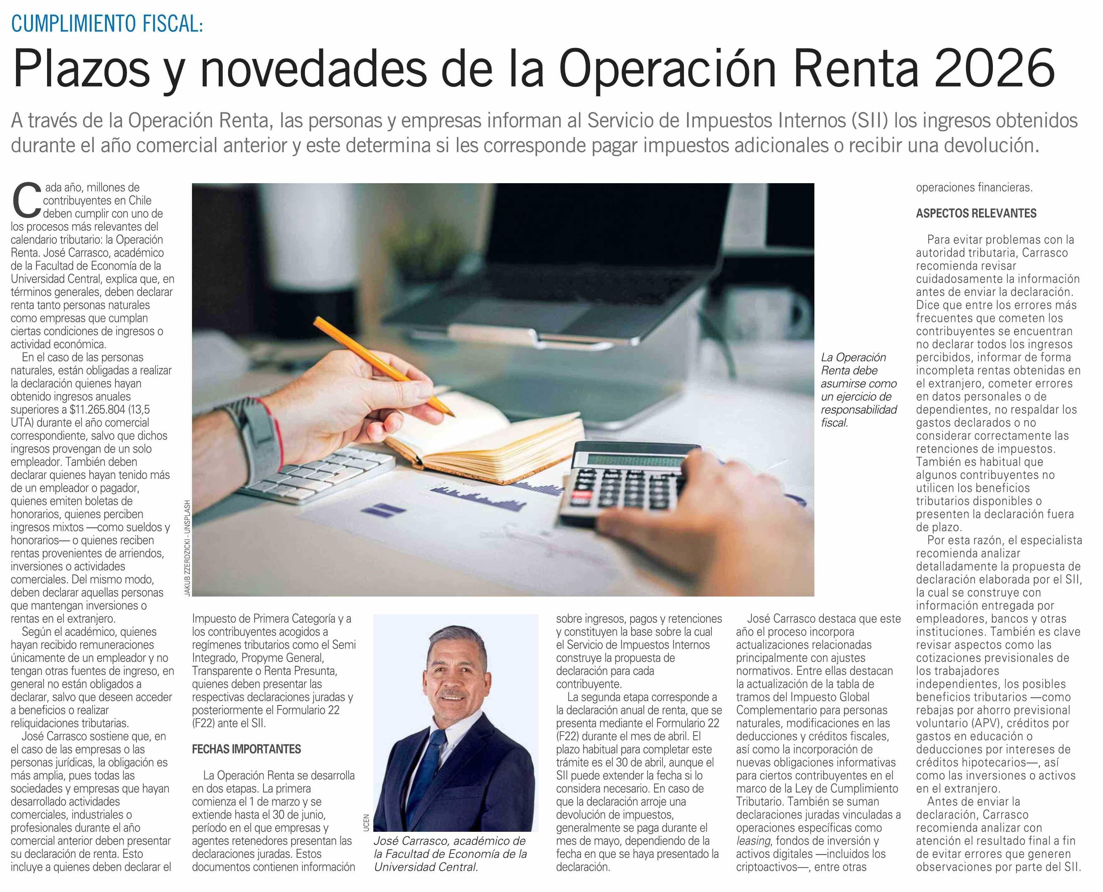 Plazos y novedades de la Operación Renta 2026 18-03-2026 El Mercurio |
