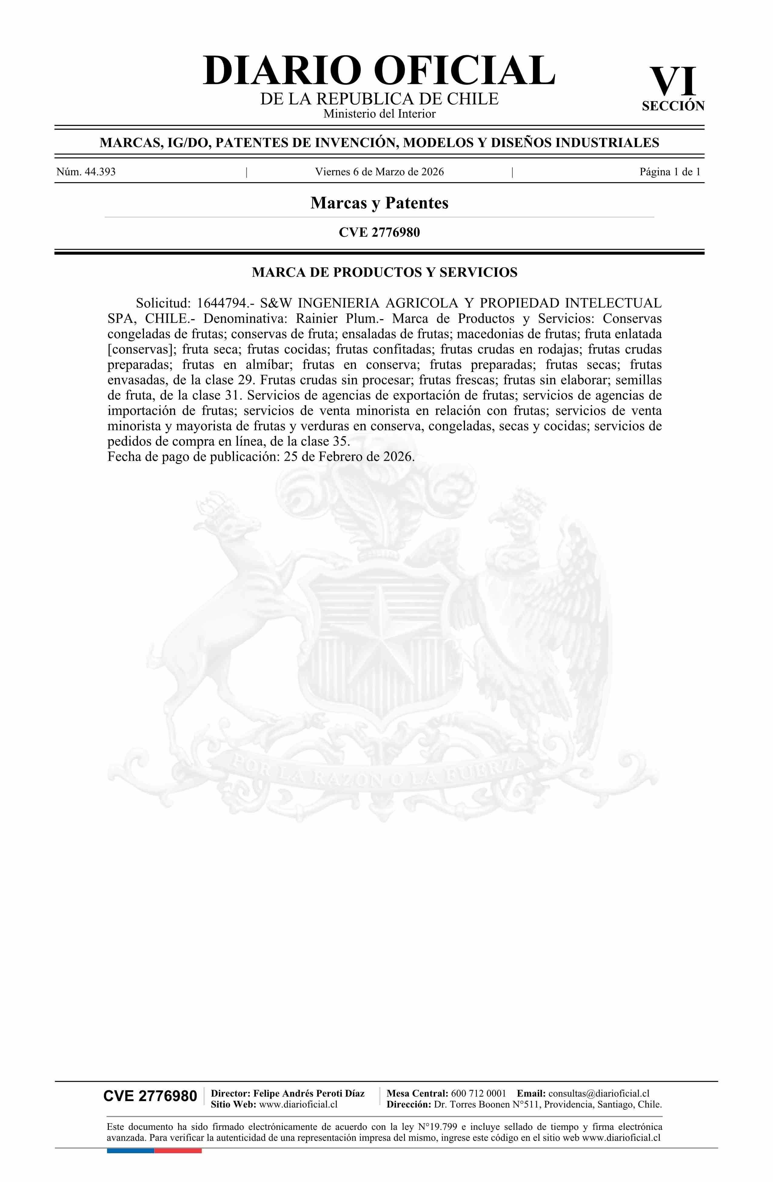 Solicitud número 1644794.- Rainier Plum 06-03-2026 Diario Oficial Edición Electrónica |