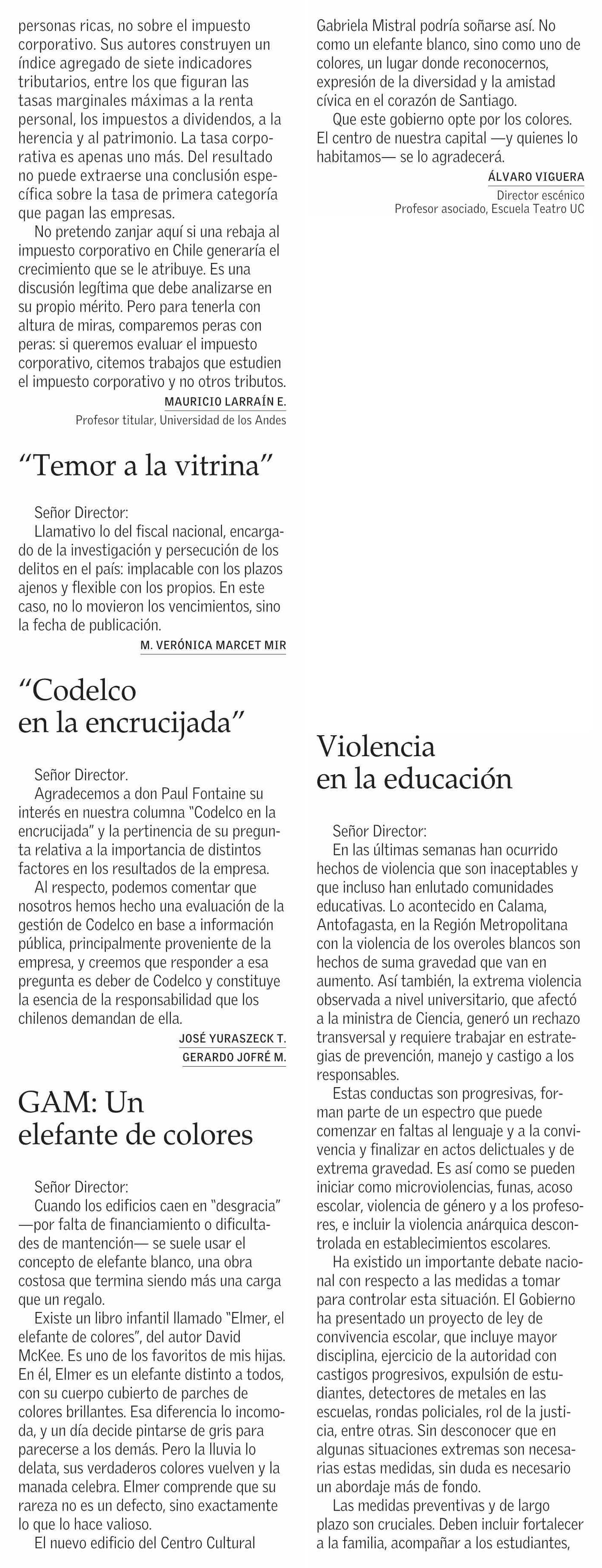 CARTAS: Un elefante de colores 21-04-2026 El Mercurio |