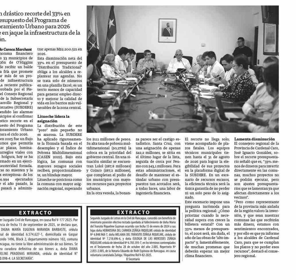 Título: El "tijeretazo" de la SUBDERE: O'Higgins enfrenta un 2026 con cinturón apretado