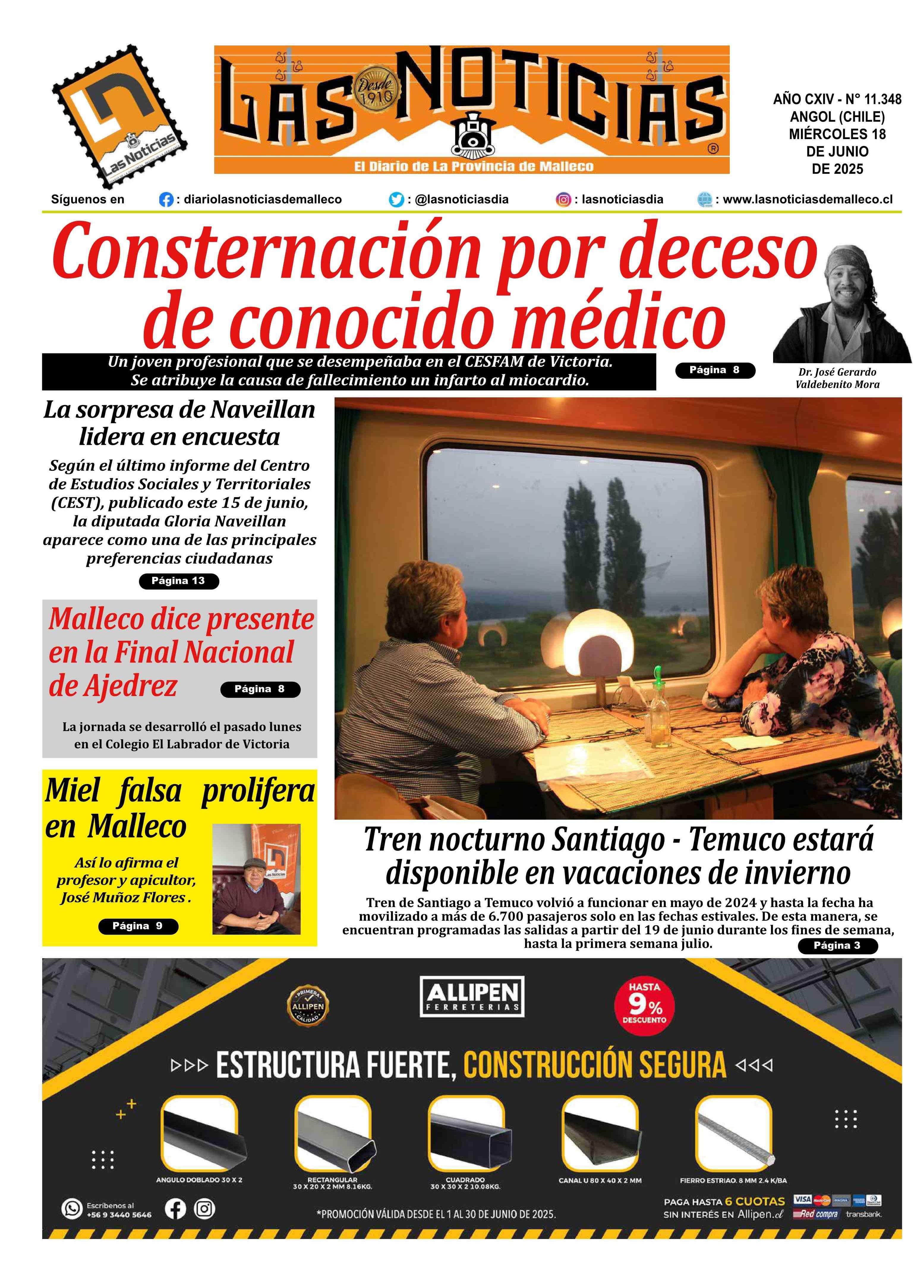 PORTADA LAS NOTICIAS DE MALLECO - CHILE 18-06-2025 Las Noticias |
