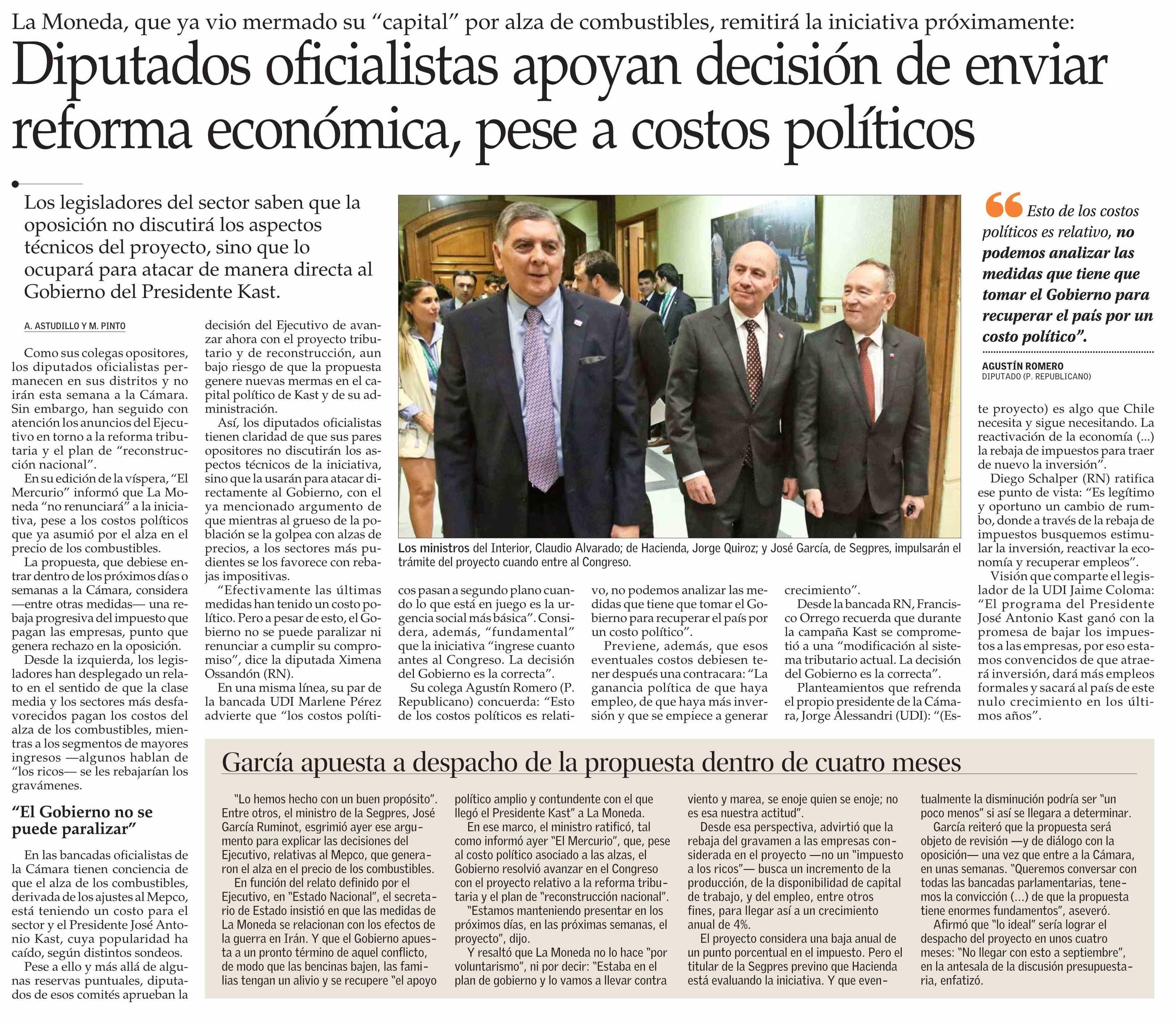 Diputados oficialistas apoyan decisión de enviar reforma económica, pese a costos políticos 30-03-2026 El Mercurio |