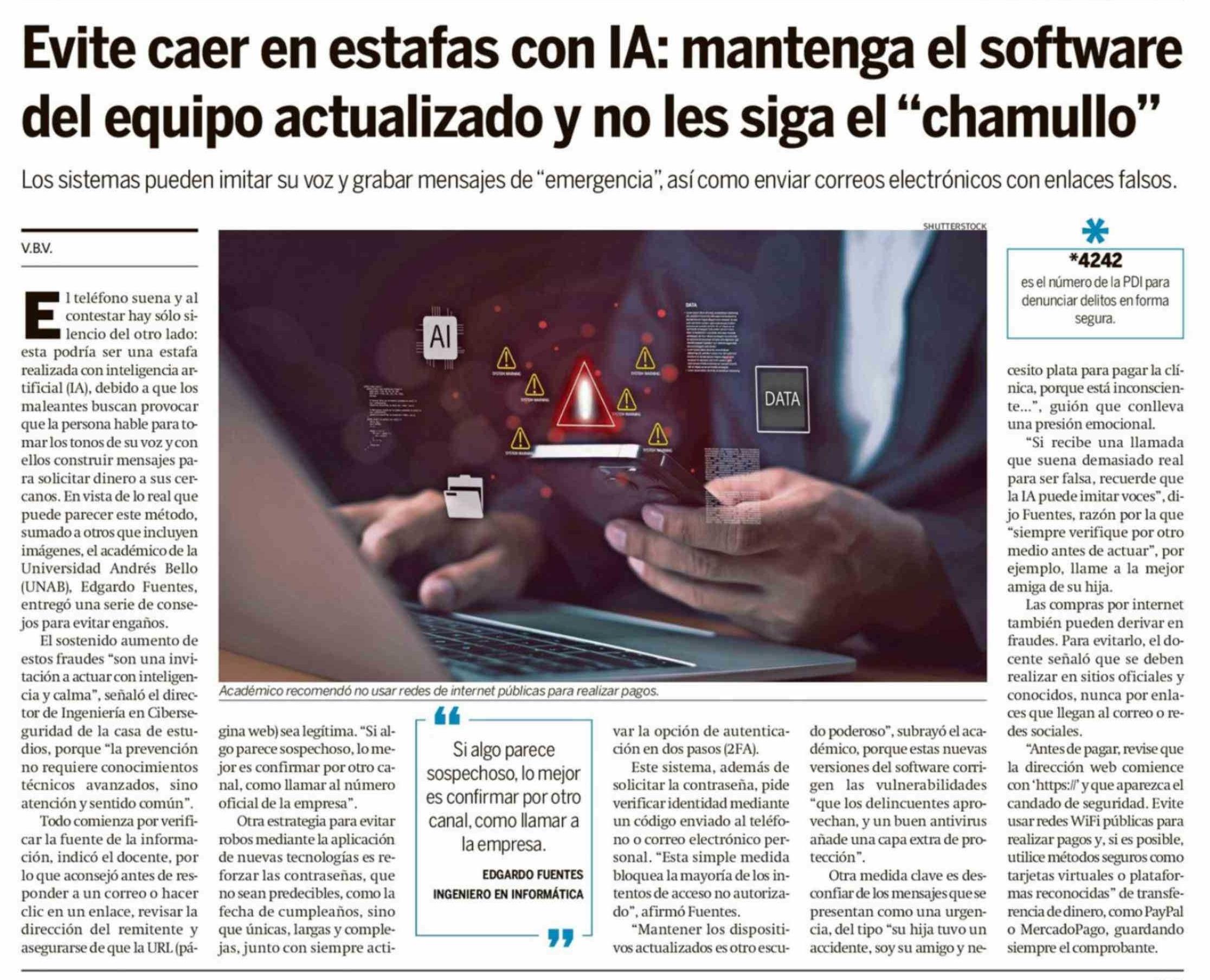 Evite caer en estafas con IA: mantenga el software del equipo actualizado y no les siga el "chamullo" 13-02-2026 Hoy x Hoy Antofagasta |