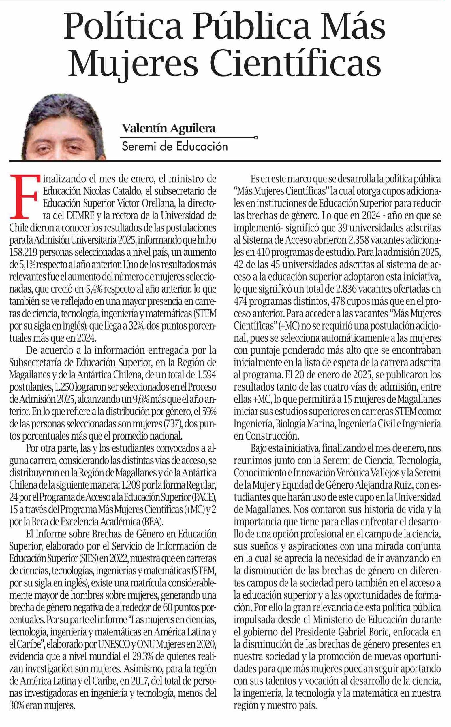 Columnas de Opinión: Política Pública Más Mujeres Científicas 09-02-2025 El Pingüino |