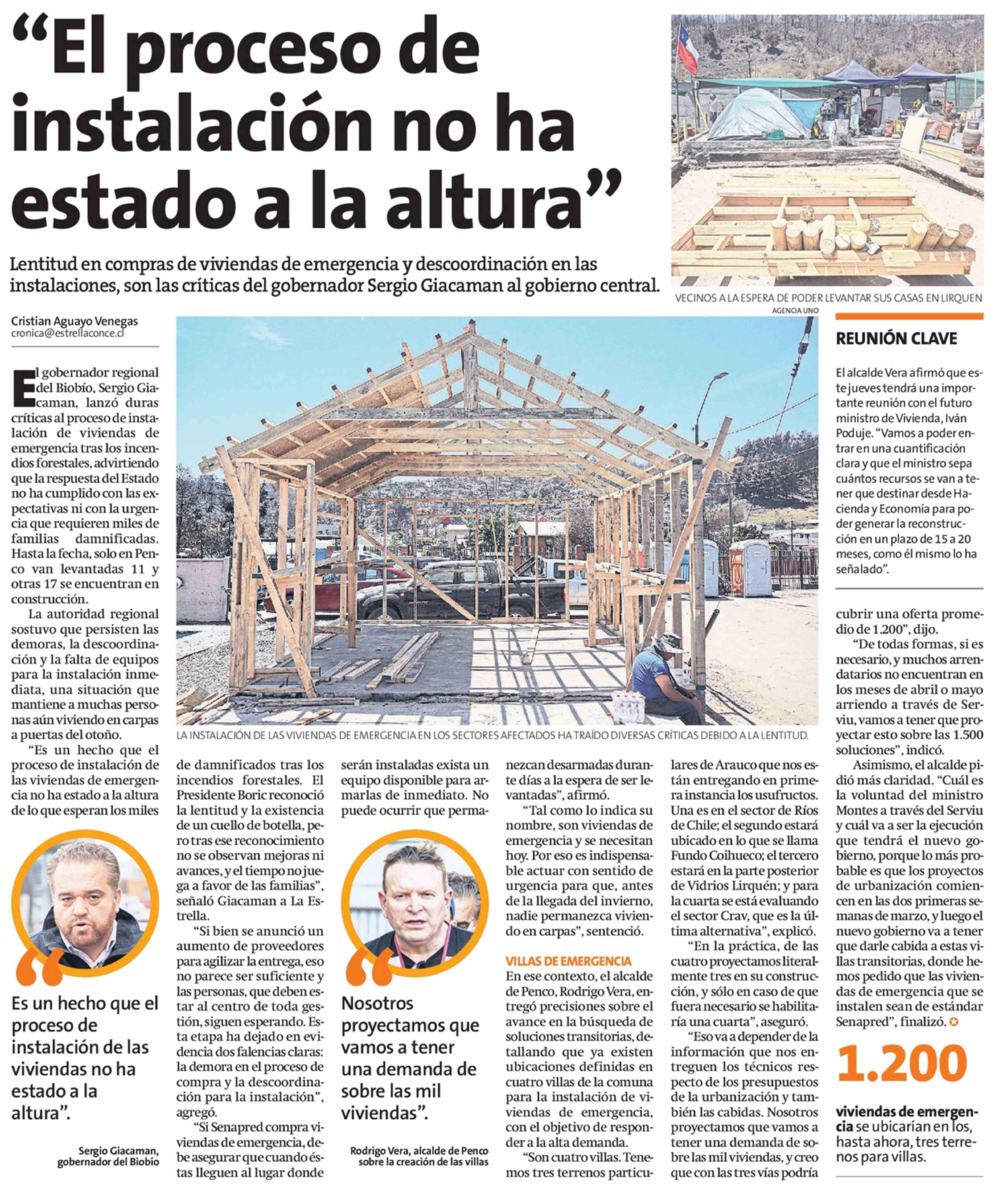 "El proceso de instalación no ha estado a la altura" 11-02-2026 La Estrella de Concepción |