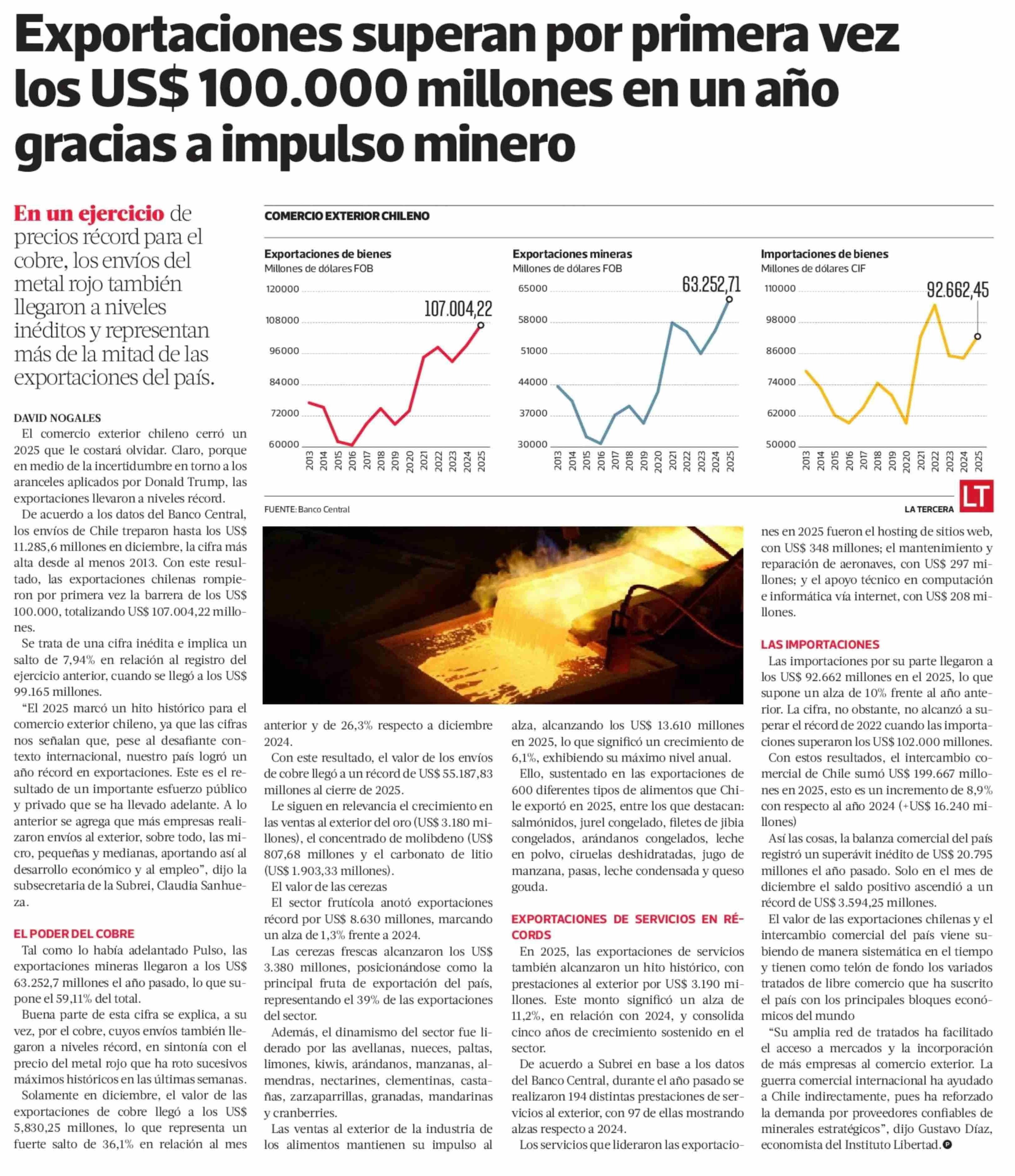 Título: Exportaciones superan por primera vez los US$ 100.000 millones en un año gracias a impulso minero