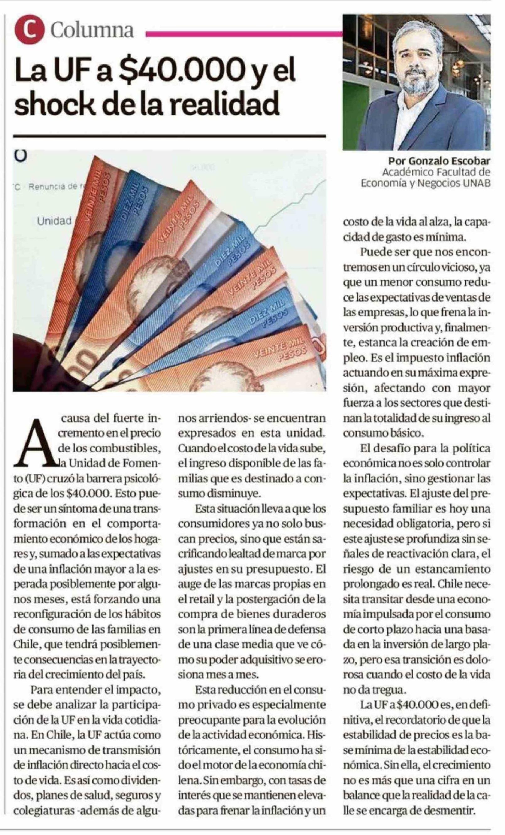 | Título: | Columnas de Opinión: La UF a $40.000 y el shock de la realidad |