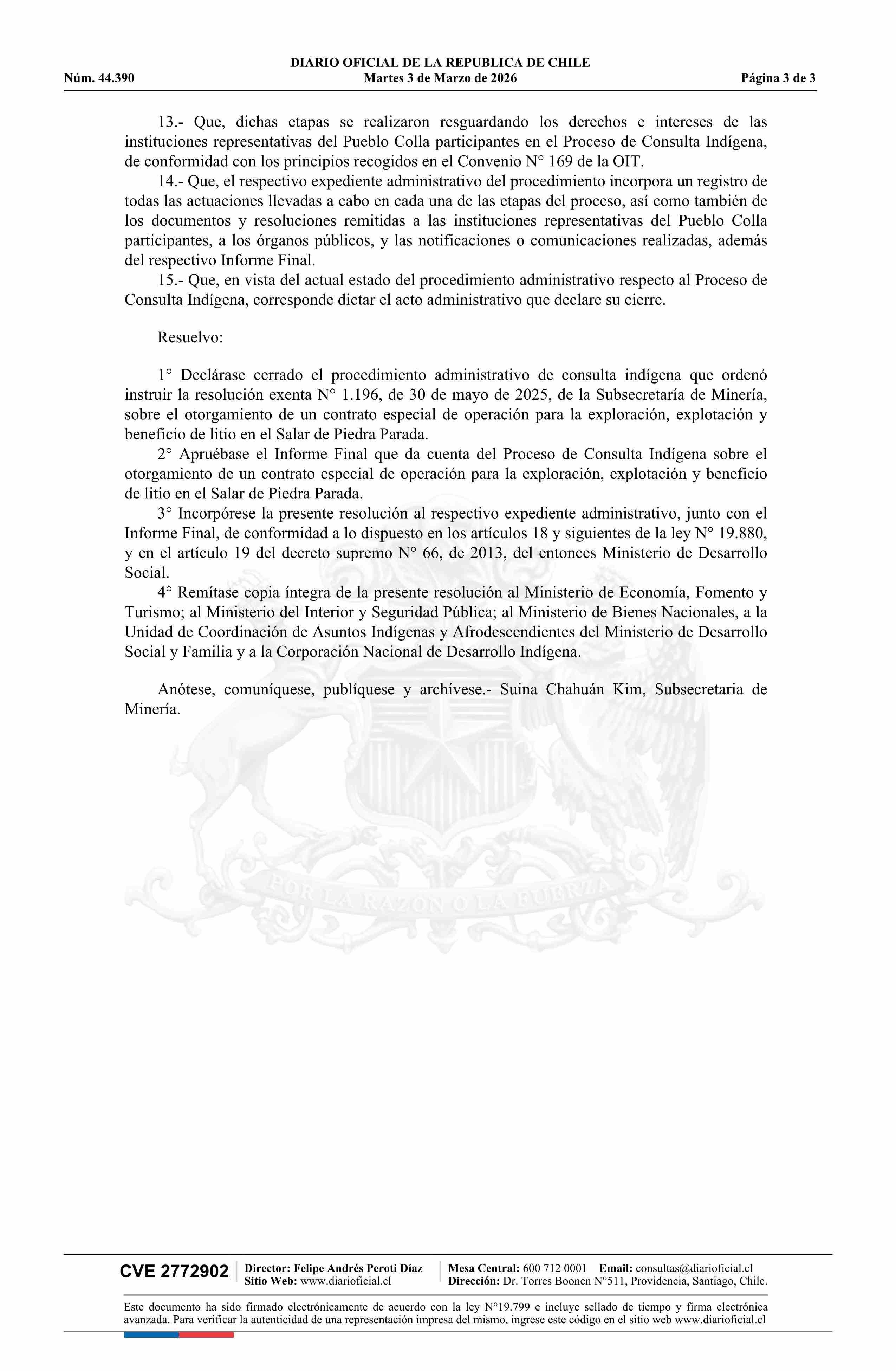 Título: Resolución exenta número 93, de 2026.- Declara cerrado el procedimiento administrativo de consulta indígena ordenado instruir por resolución N° 1.196 exenta, de 2025