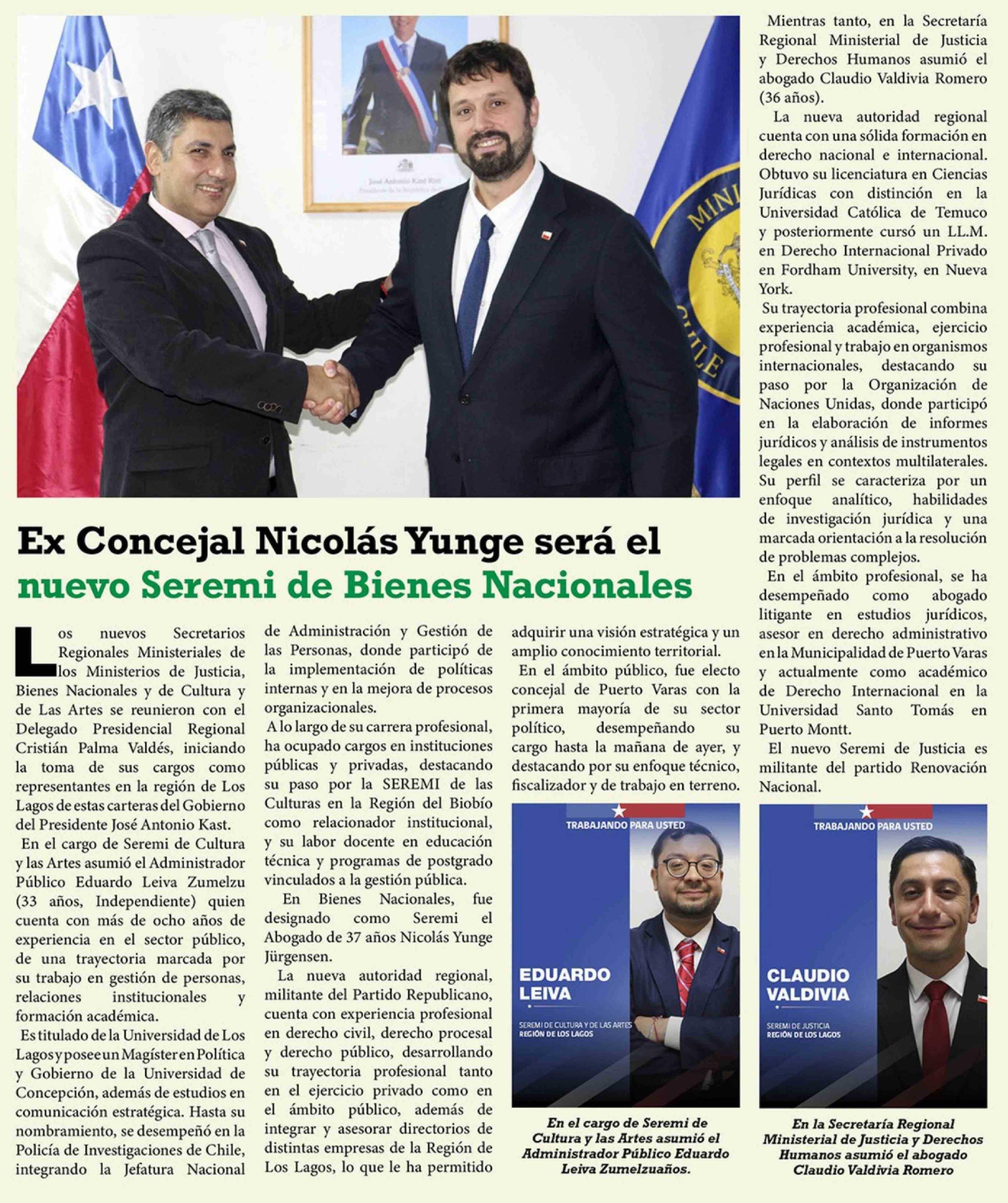 Título: Ex Concejal Nicolás Yunge será el nuevo Seremi de Bienes Nacionales