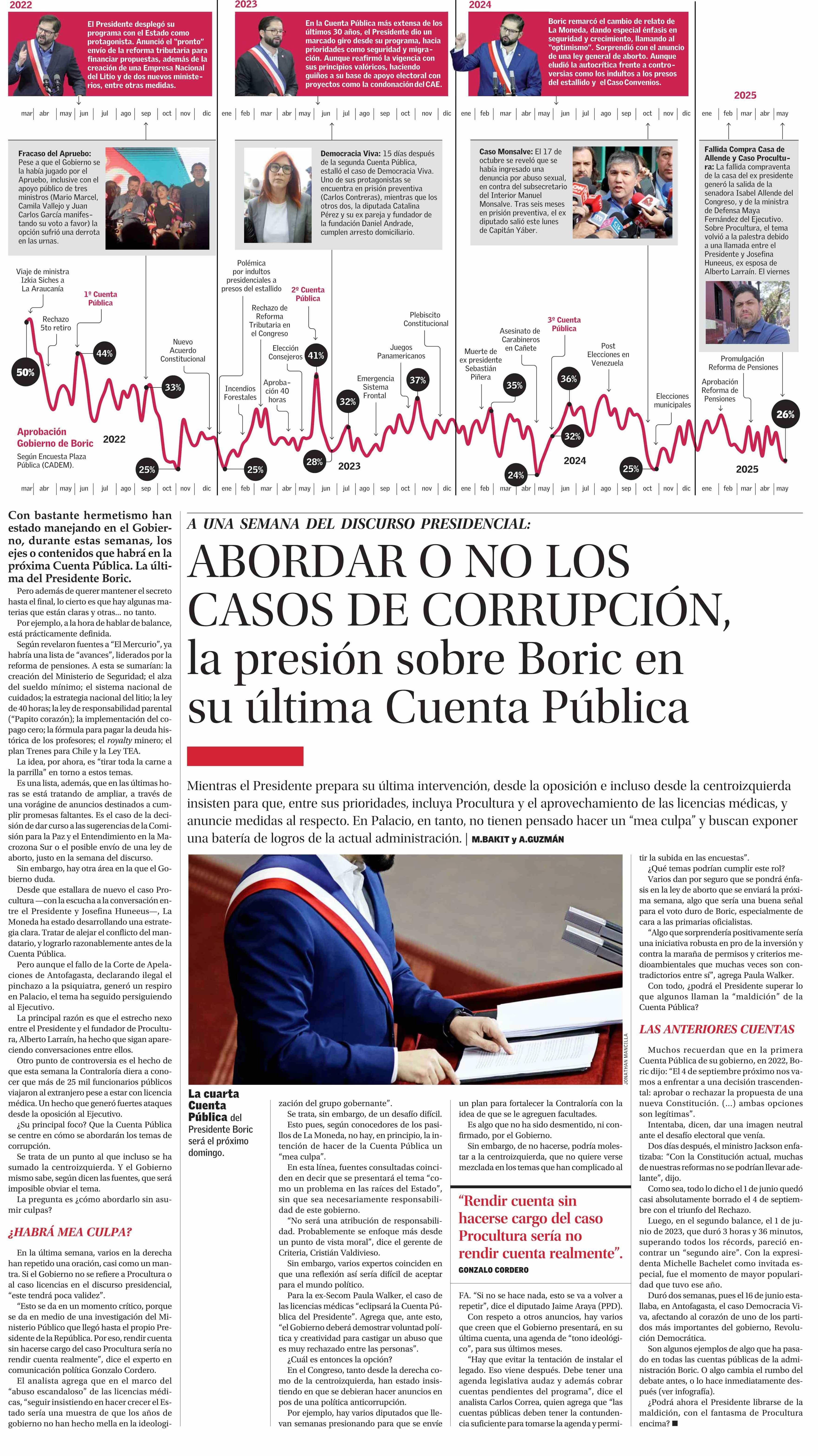 Título: ABORDAR O NO LOS CASOS DE CORRUPCIÓN, la presión sobre Boric en su última Cuenta Pública