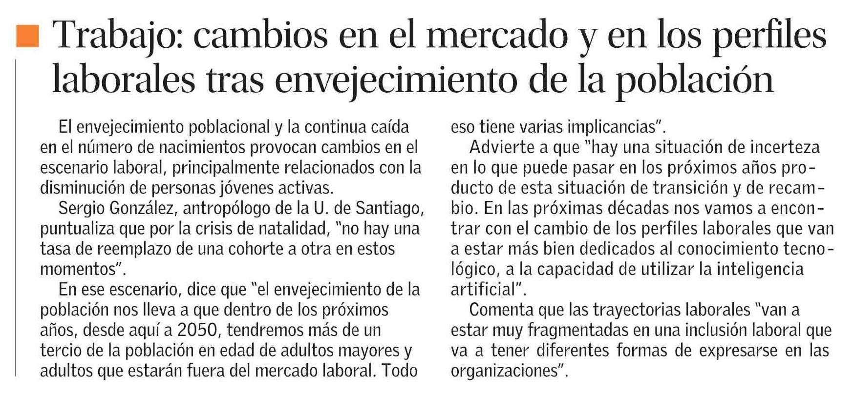 Título: N Trabajo: cambios en el mercado y en los perfiles laborales tras envejecimiento de la población