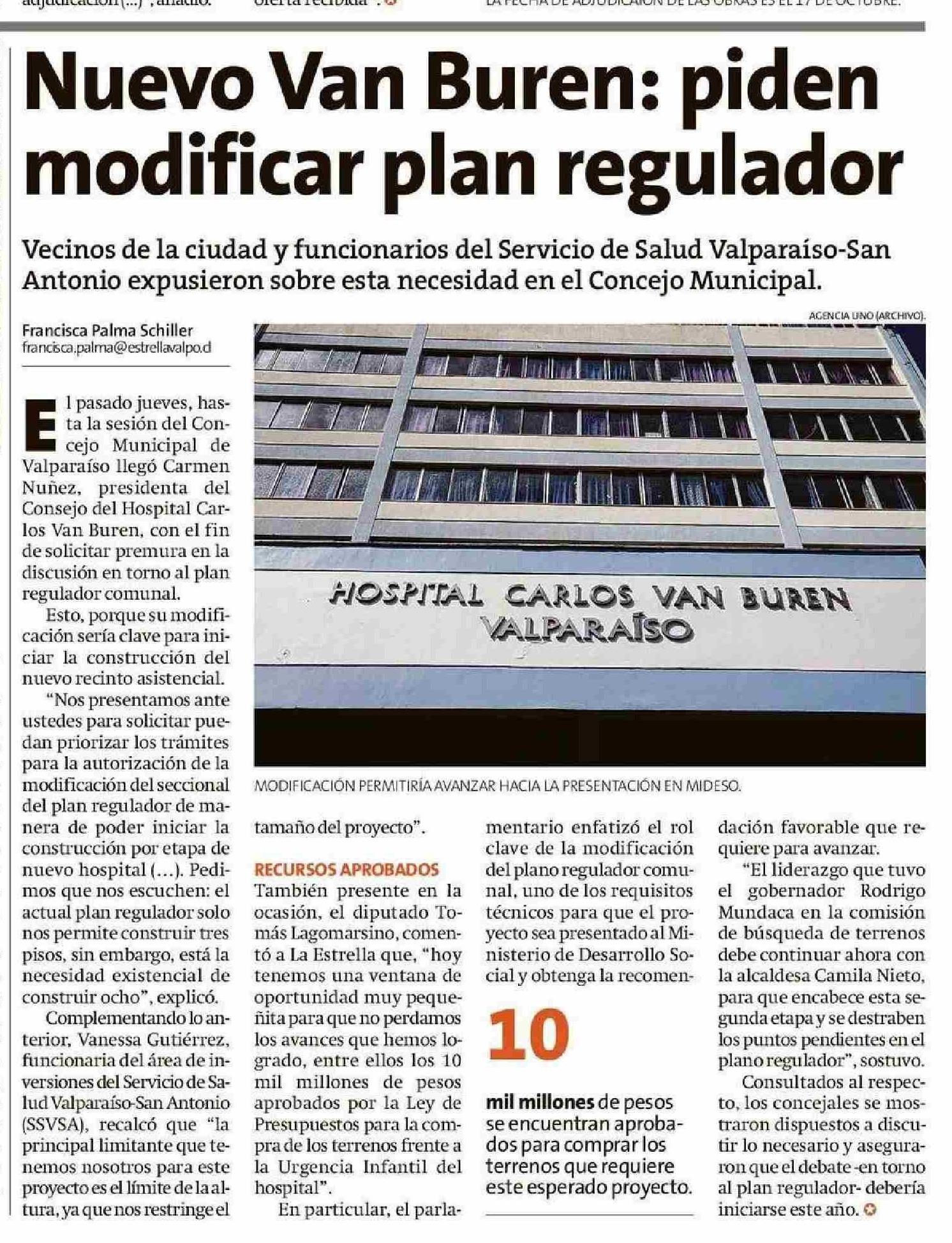Nuevo Van Buren: piden modificar plan regulador 27-05-2025 La Estrella de Valparaíso |