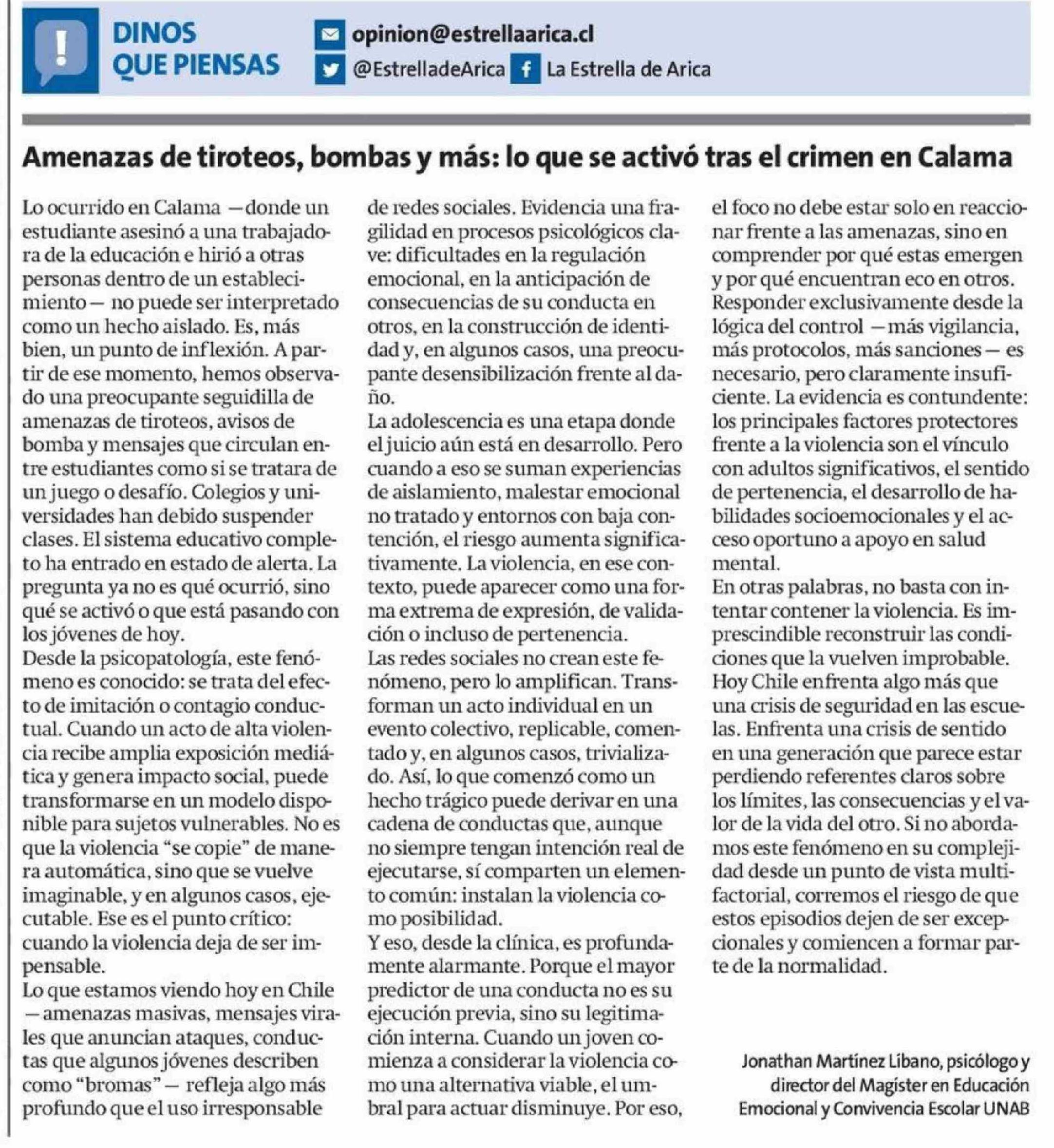 Amenazas de tiroteos, bombas y más: lo que se activó tras el crimen en Calama 21-04-2026 La Estrella de Arica |