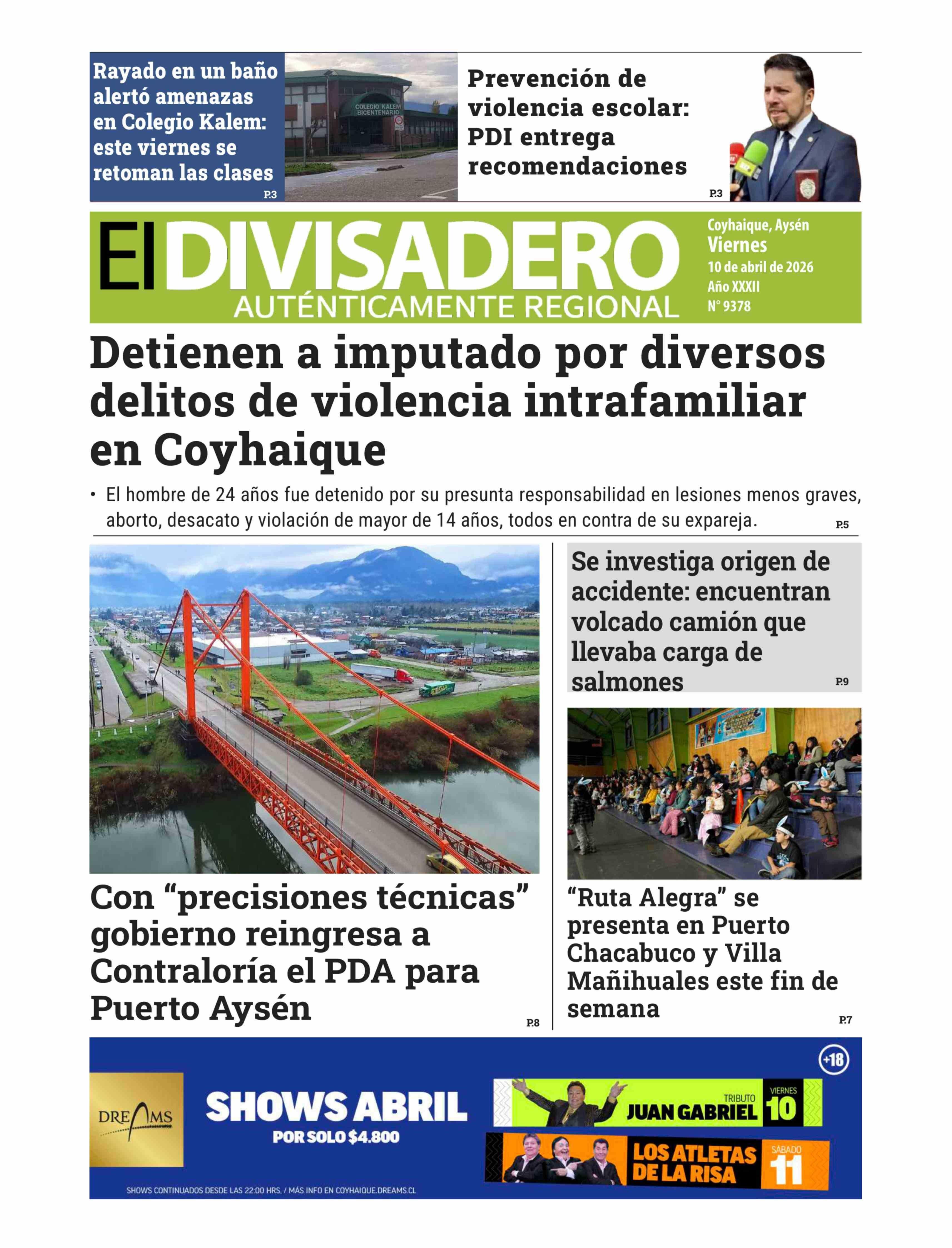 | Fecha: | 10-04-2026 | Sector: | Portada | Región: | Región Aysén del General Carlos Ibáñez del Campo |
