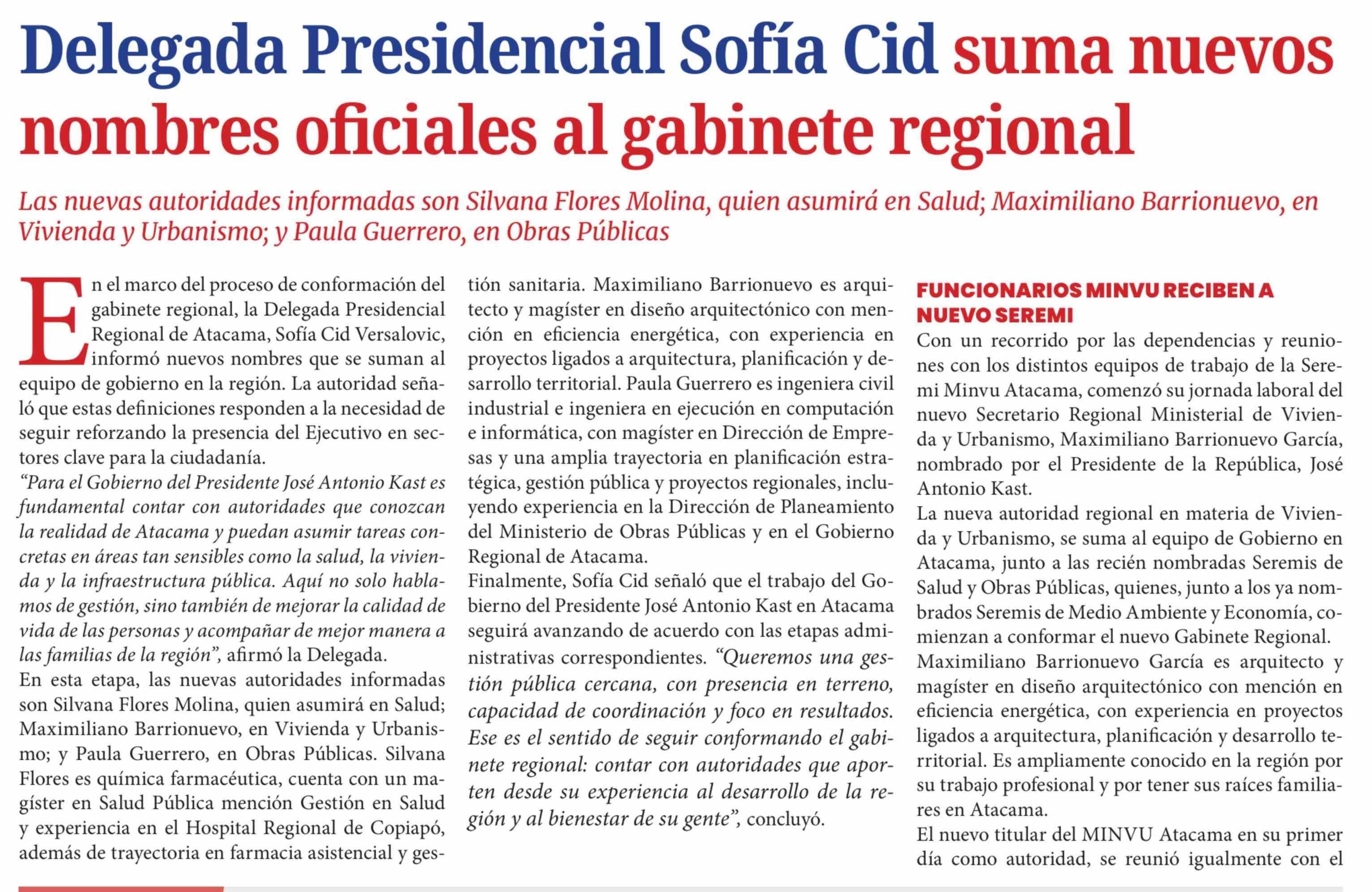 Título: Delegada Presidencial Sofía Cid suma nuevos nombres oficiales al gabinete regional