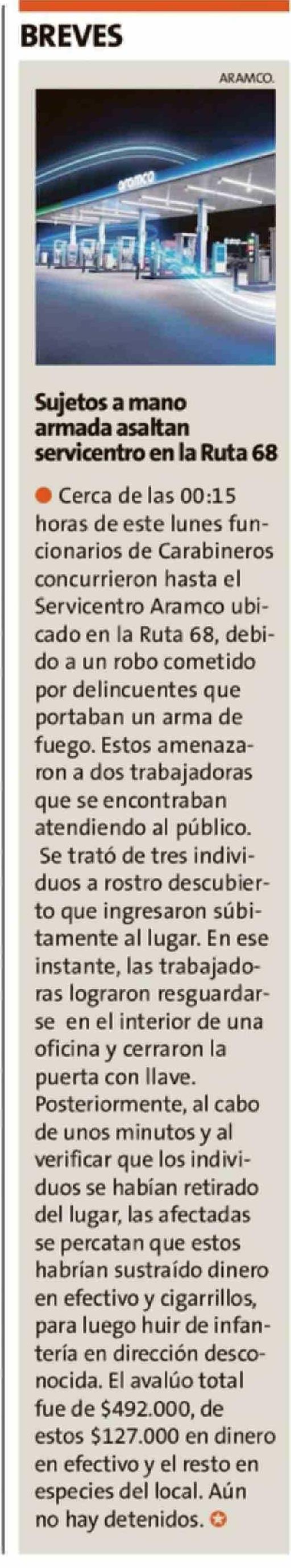 Título: Sujetos a mano armada asaltan servicentro en la Ruta 68
