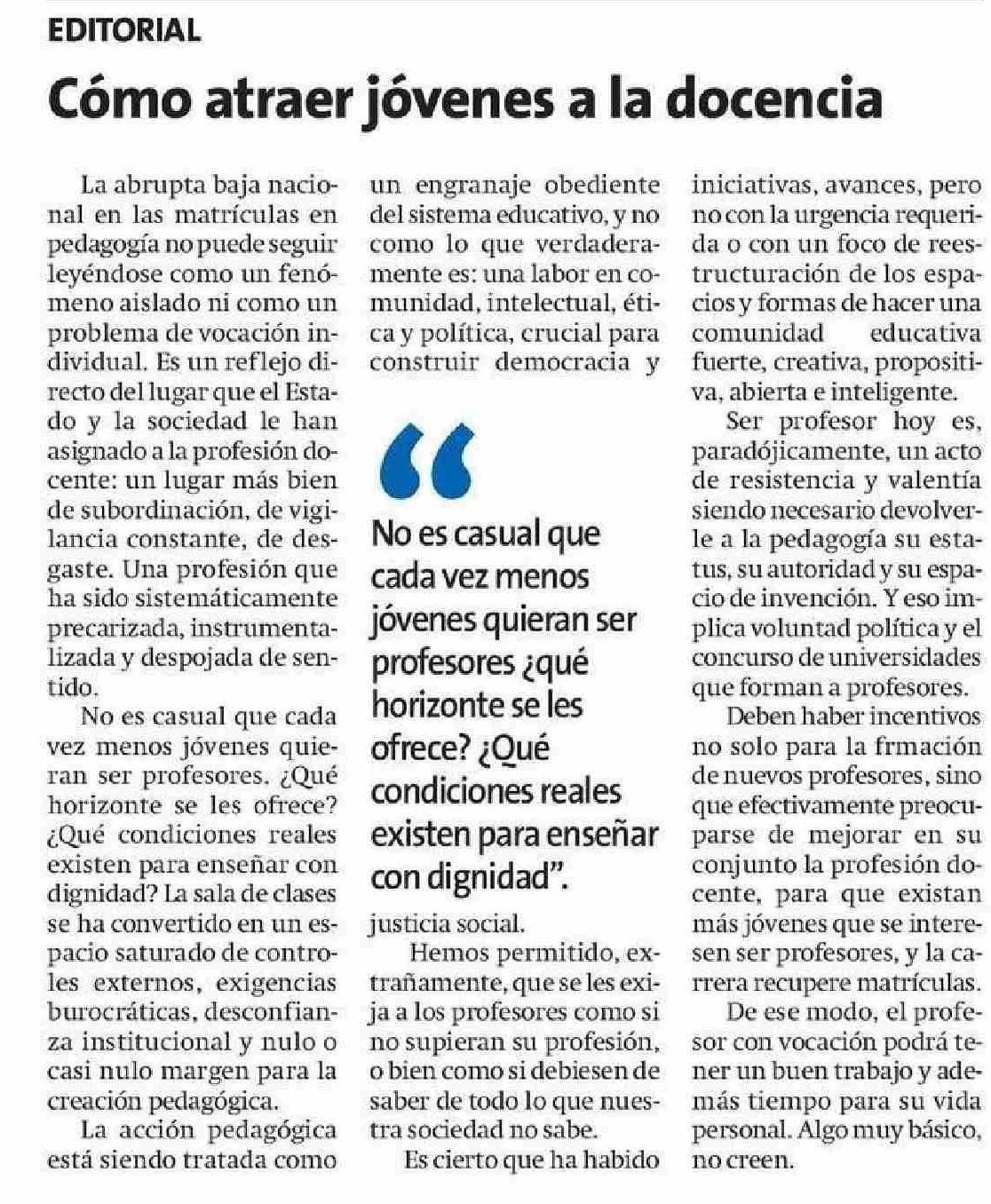 Cómo atraer jóvenes a la docencia 01-06-2025 La Estrella de Arica |