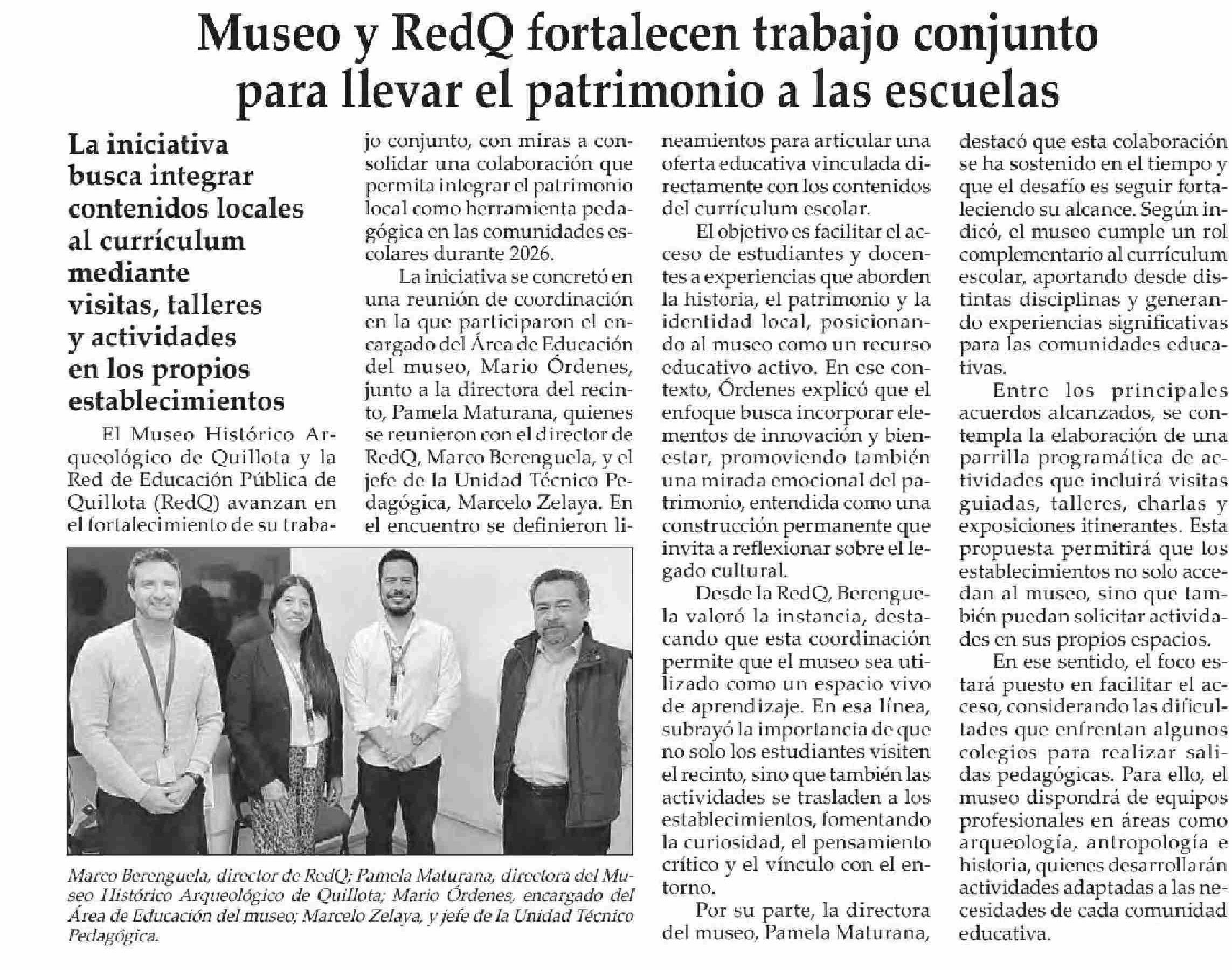 Museo y RedQ fortalecen trabajo conjunto para llevar el patrimonio a las escuelas 02-04-2026 El Observador |