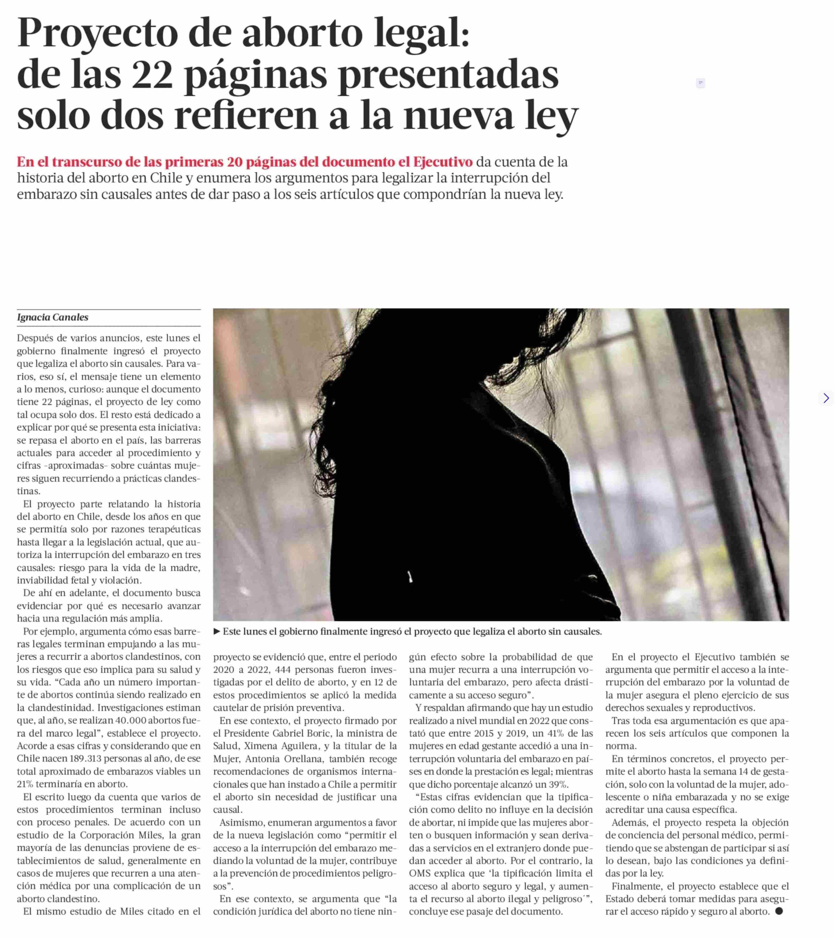 Proyecto de aborto legal: de las 22 páginas presentadas solo dos refieren a la nueva ley 04-06-2025 La Tercera |